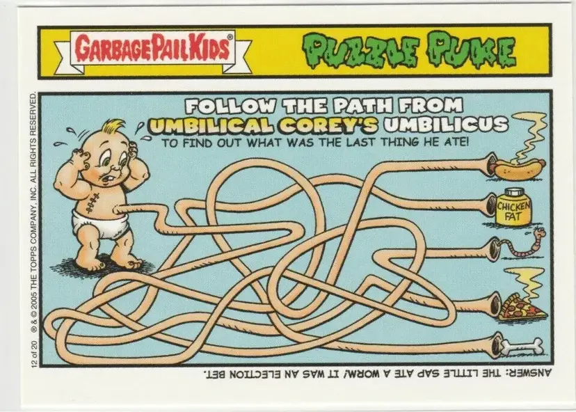 Related ID: overourheadz Movie: The Garbage Pail Kids Movie Card Size: Standard Autographed: No Set: Garbage Pail Kids - All-New Series 4 Store ID: American Pop Cult Year Manufactured: 2005 Material: Card Stock, Paper Age Level: 6+ Franchise: Garbage Pail Kids Original/Licensed Reprint: Original Vintage: Yes Series: 2005 All-New Series 4 ANS4 Type: Non-Sport Trading Card Descriptive: comedy parody satire spoof Language: English Mononym: overourheads Manufacturer: Topps Features: Base Set, Sticker Genre: Comedy, Parody, Satire Card Type: die-cut trading card sticker Country/Region of Manufacture: United States