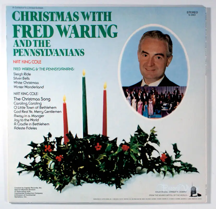 Christmas With Nat King Cole and Fred Waring with the Pennsylvanians is a festive collaboration featuring Nat King Cole's smooth vocals and Fred Waring's renowned choral arrangements, blending jazz and orchestral styles for a timeless holiday sound. This album combines Cole’s iconic renditions of Christmas classics with Waring’s lush, harmonious choral backing, creating a warm and nostalgic holiday experience. While the album itself did not produce new hit singles, it features Cole’s signature song The Christmas Song, which was originally recorded in 1946 and re-recorded multiple times, with the 1961 stereo version becoming a holiday standard and earning a place in the National Recording Registry in 2022 for its cultural significance. The album’s historical importance lies in its pairing of two musical giants, showcasing Cole’s enduring influence on holiday music and Waring’s innovative choral direction. The Christmas Song remains a perennial chart performer, peaking at No. 9 on the Billboard Hot 100 in 2022, marking the longest journey to the top ten at 62 years.