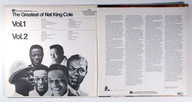 Greatest Hits Vol 1 and 2 contains Nat King Cole's all-time hits such as Autumn Leaves, For Sentimental Reasons, Stardust, L-O-V-E. Nat King Cole, was an American singer who first came to prominence as a leading jazz pianist. He was widely noted for his soft baritone voice, performing in big band and jazz genres, and was a major force in popular music for three decades.
