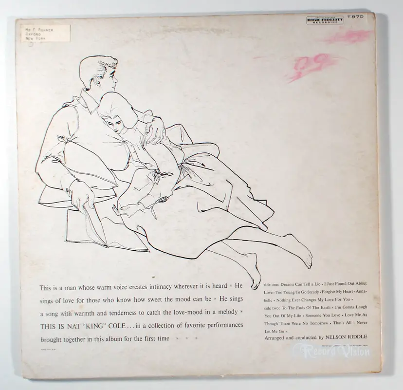 This Is, by Nat King Cole,released by Capitol Records, featuring a collection of jazz and pop tracks by the renowned artist Nat King Cole. The album, pressed in mono at the Capitol Records Pressing Plant in Scranton, includes twelve songs such as Dreams Can Tell A Lie, To The Ends Of The Earth, and That's All, showcasing Cole's smooth vocal style and emotional depth. Historically significant as a reflection of Cole's versatility during the peak of his career, the album captures his transition from jazz to mainstream pop, appealing to a broad audience in the 1950s. While the album itself is a compilation, To The Ends Of The Earth stands out as a notable single, reaching moderate chart success and highlighting Cole's ability to blend romantic balladry with orchestral arrangements