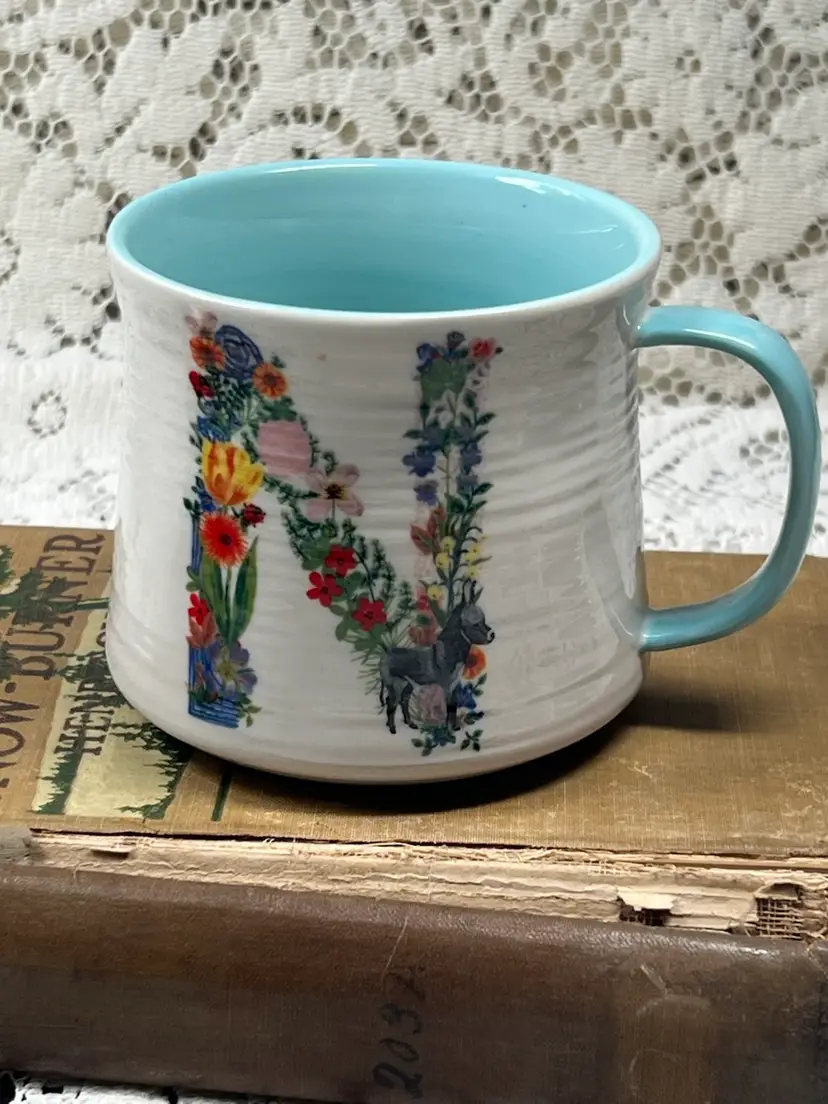 Nathlie Lite Anthropologie Ceramic Monogrammed, N Coffee Mug