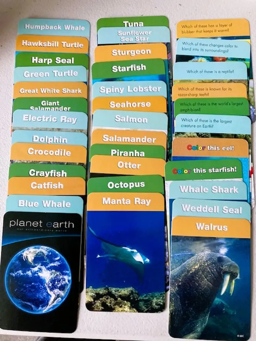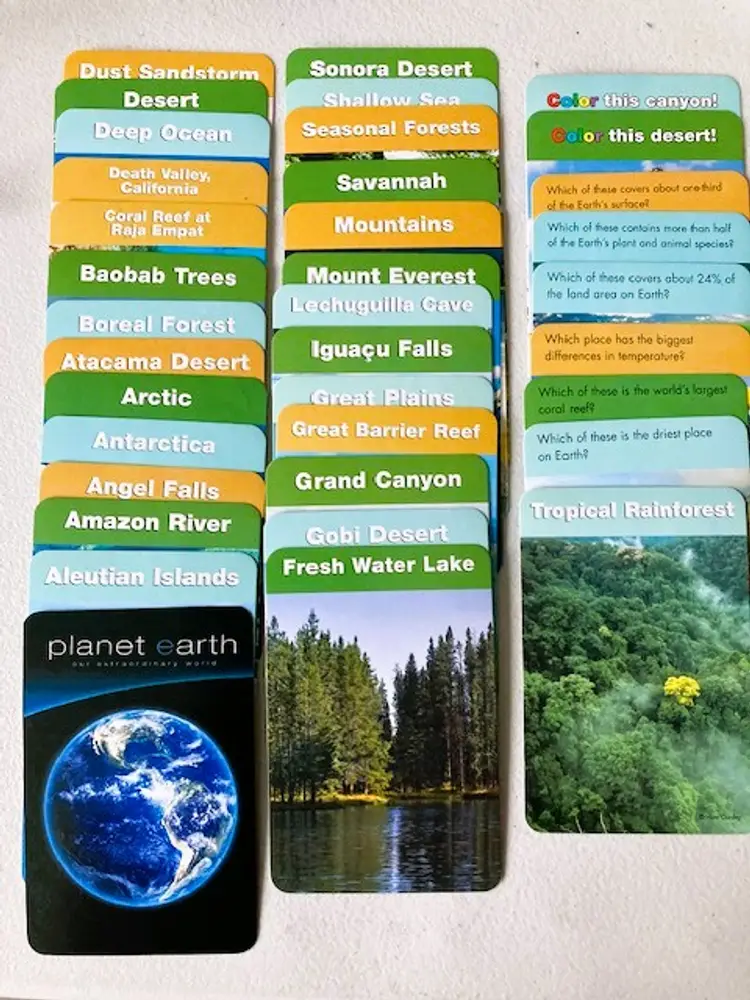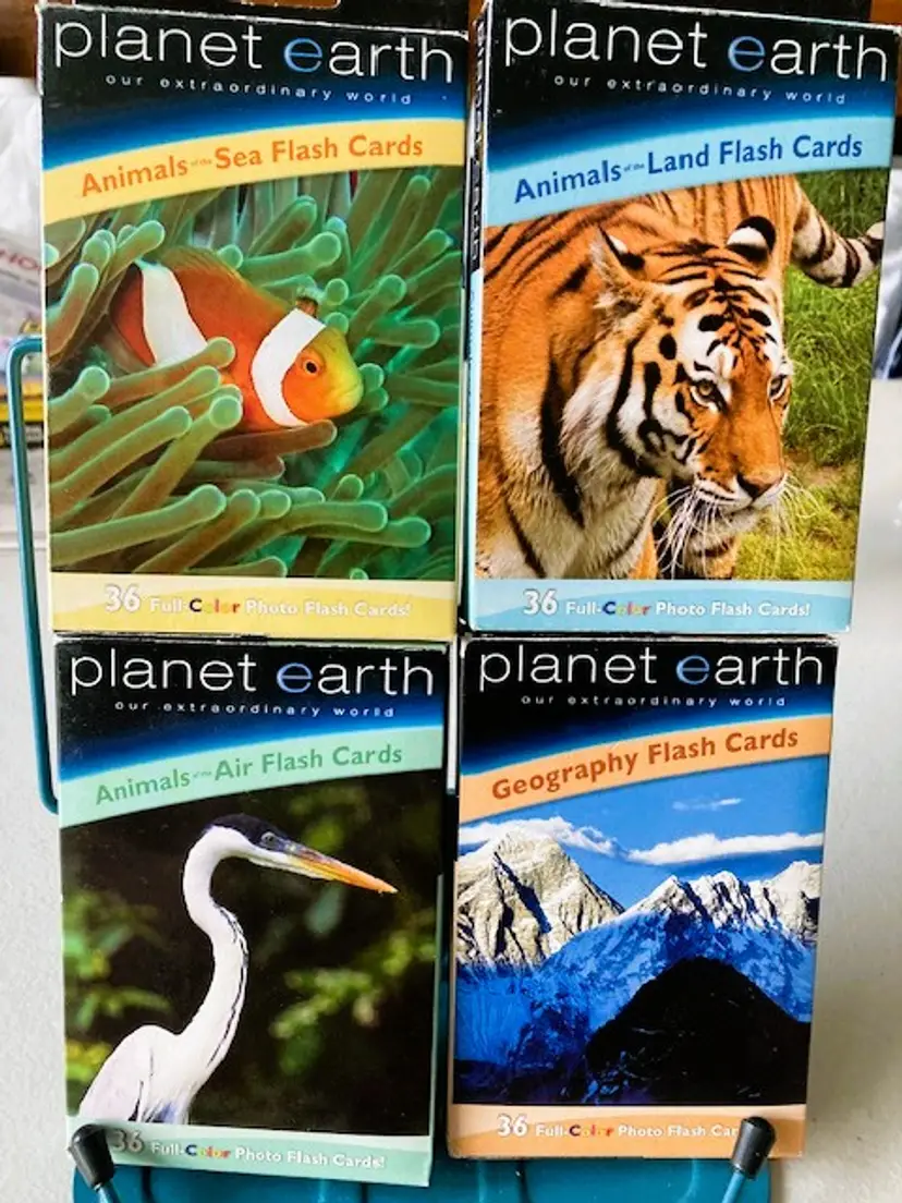 Planet Earth Our Extraordinary World Originally aired on the BBC 2006. "These flash cards celebrate the magnificent imagery of Planet Earth; the groundbreaking documentary the inspires with the incredible wonder, beauty and spirit of nature". Each Pack has 36 Flash Cards. Ages 2+