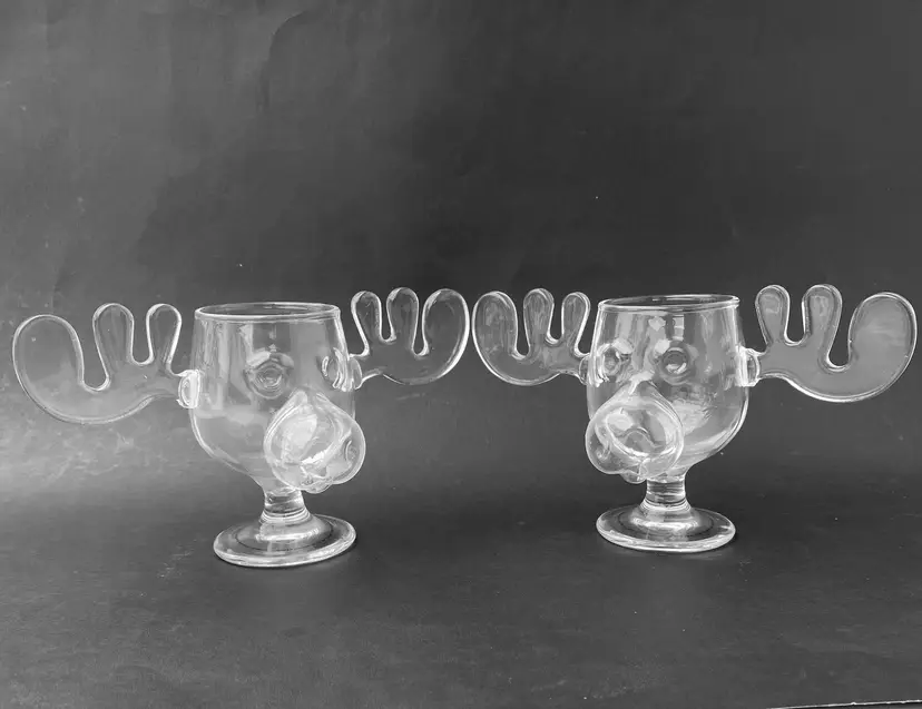 National Lampoon's Christmas Vacation commemorative clear acrylic moose mugs are perfect for the Clark Griswold in your life, when you're hosting a festive party these cups are sure to be a hit. These mugs are in unused condition. Capacity: 6 ounces Set of 2