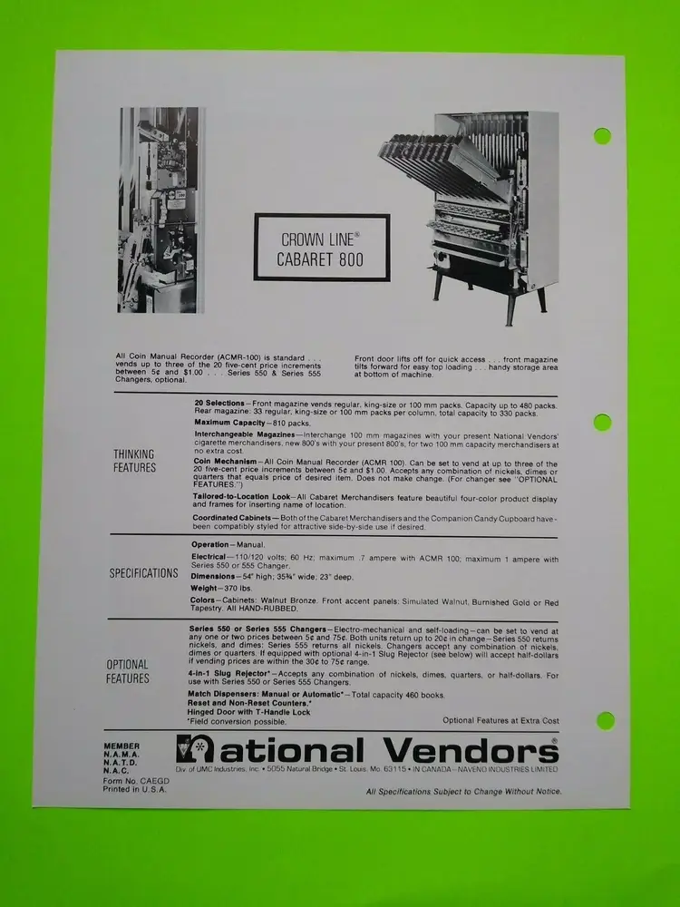 Paper: Advertising Sheet Style: Cigarette Merchandiser Modified Item: No Country/Region of Manufacture: United States Original/Reproduction: Original Brand: National Vendors
