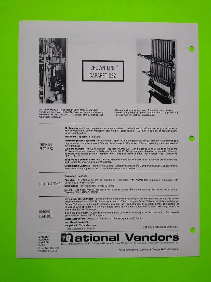 Paper: Advertising Sheet Style: Cigarette Merchandiser Modified Item: No Country/Region of Manufacture: United States Original/Reproduction: Original Brand: National Vendors