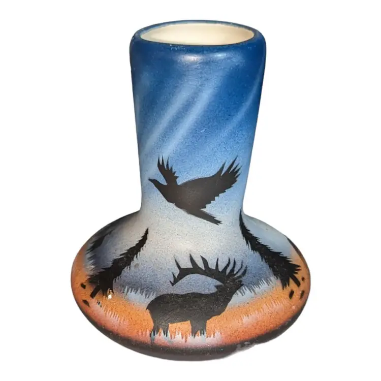 Native American Pottery Vase Wild Collection RWA Vintage Elk Eagle TSO DINE.