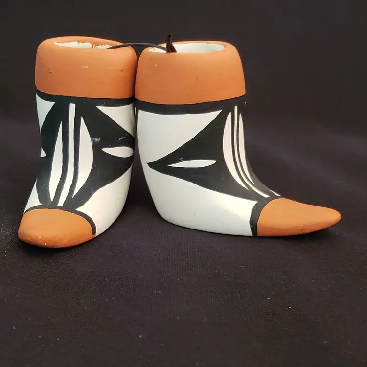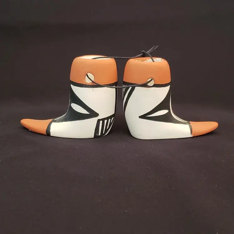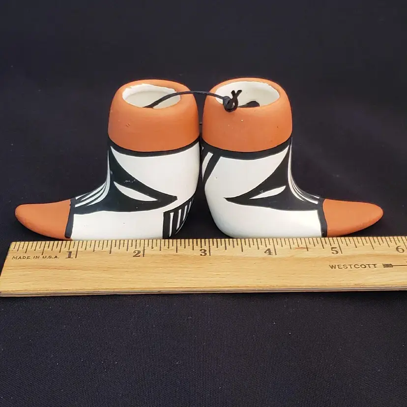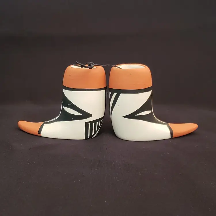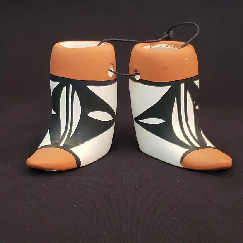 Ceramic Cowboy Boots Pair - Handmade & Signed FELIZ N.M. - Polychrome READ DESCRIPTION. Approximately 2 1/4" tall. Tied together with black string.