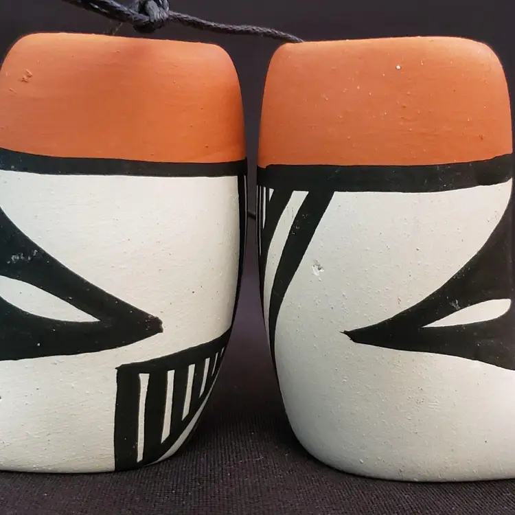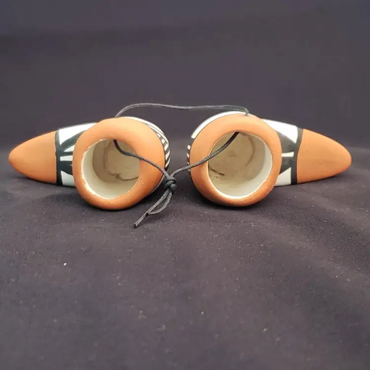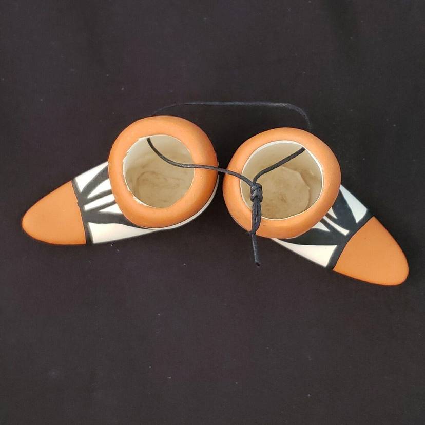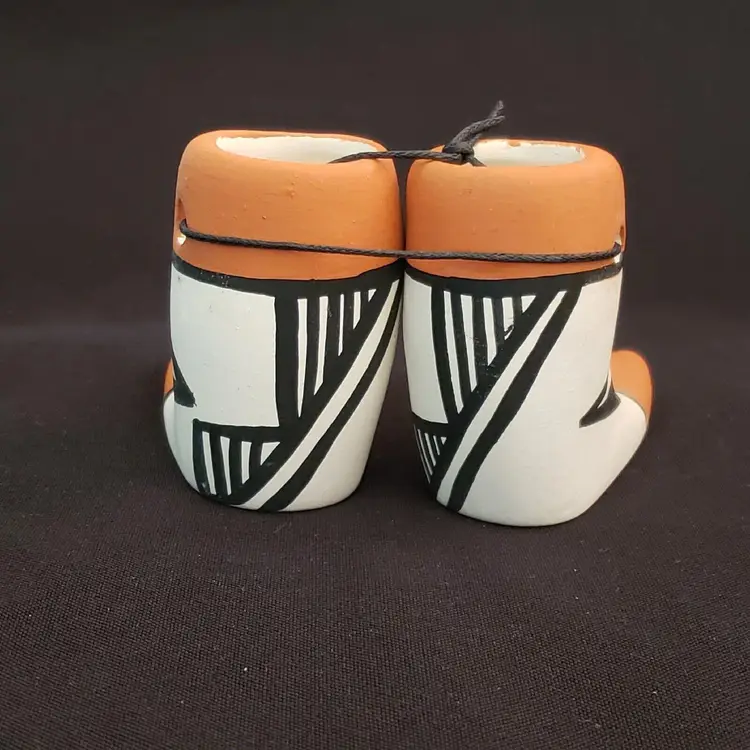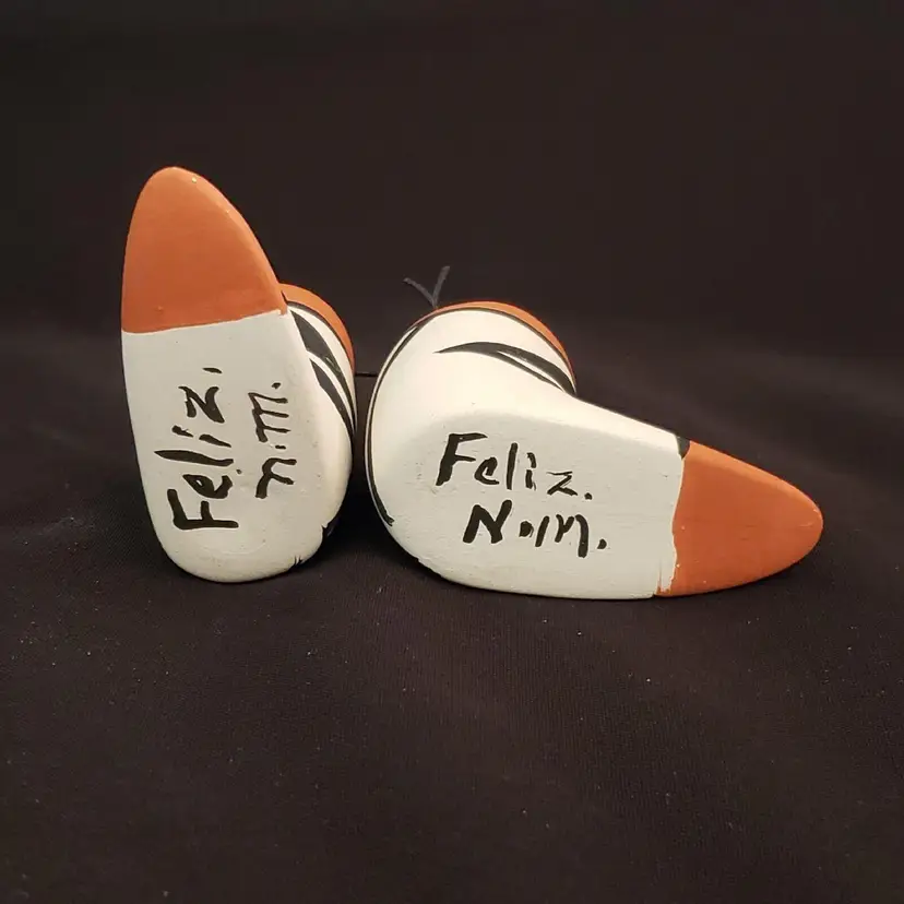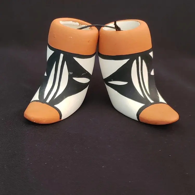 Ceramic Cowboy Boots Pair - Handmade & Signed FELIZ N.M. - Polychrome READ DESCRIPTION. Approximately 2 1/4" tall. Tied together with black string.
