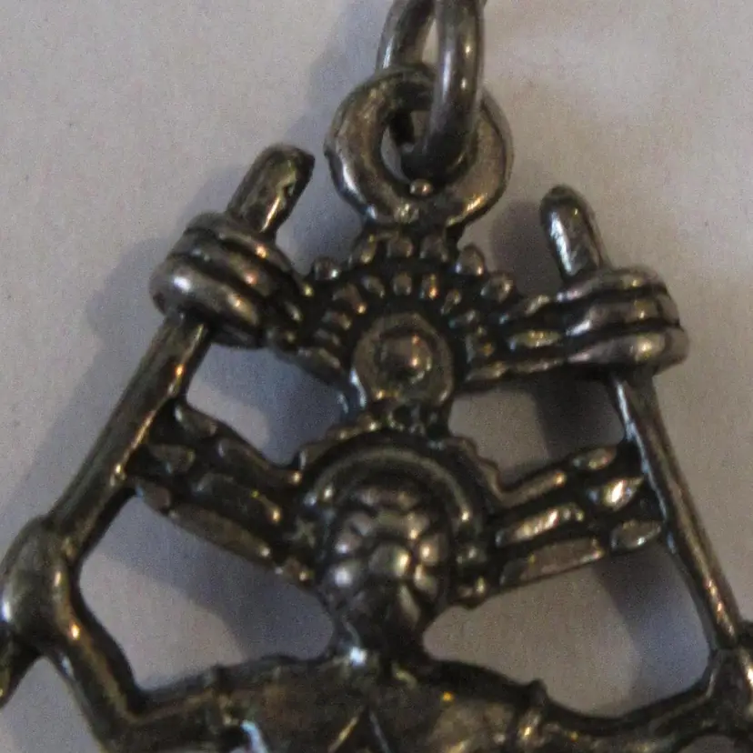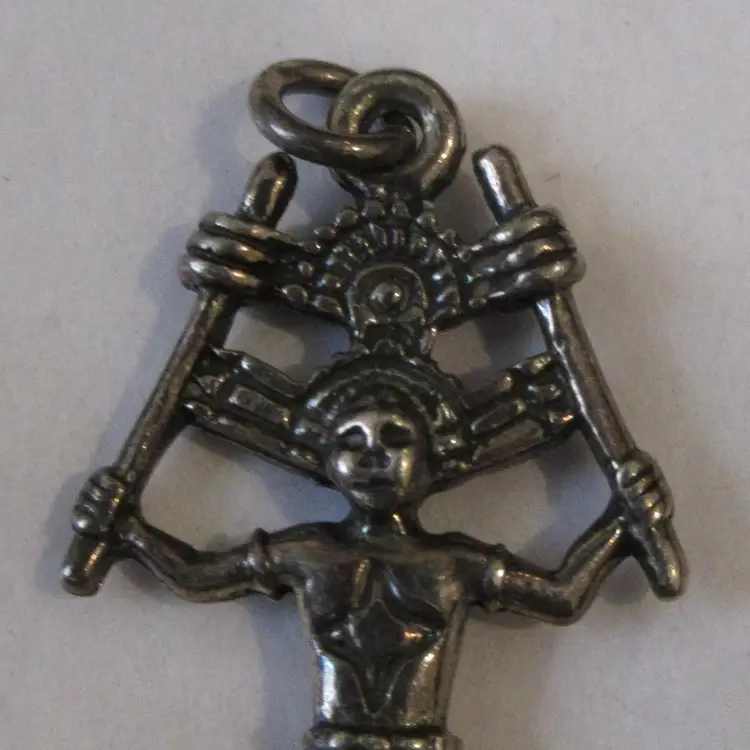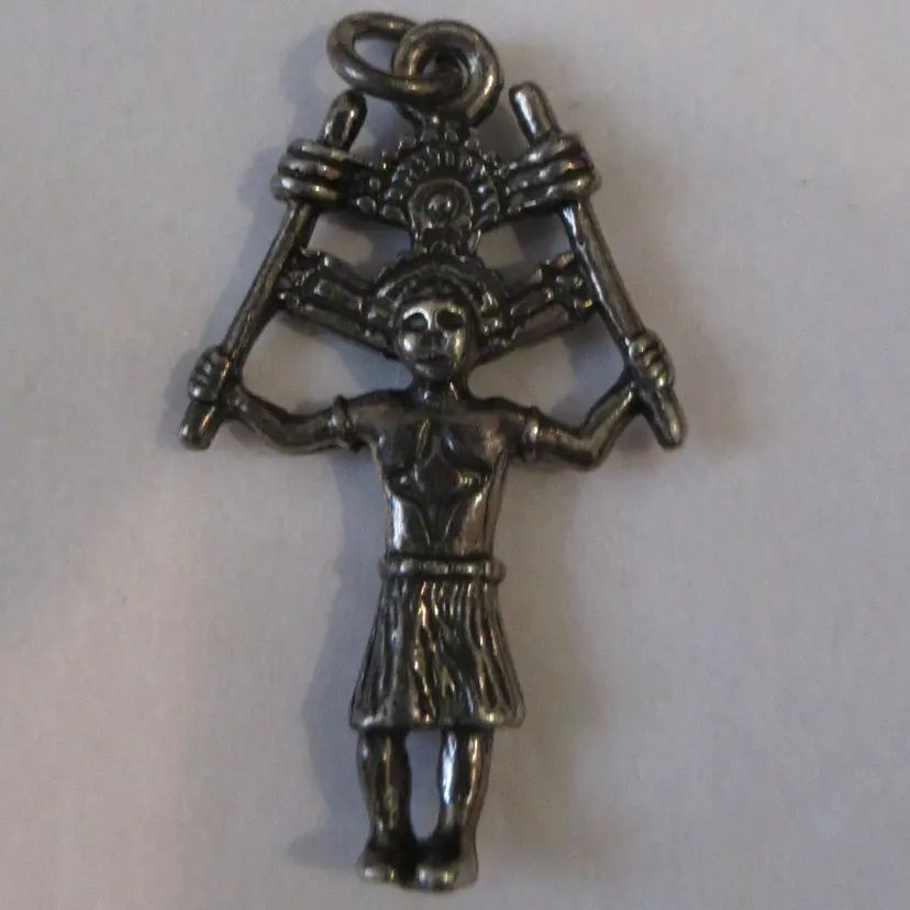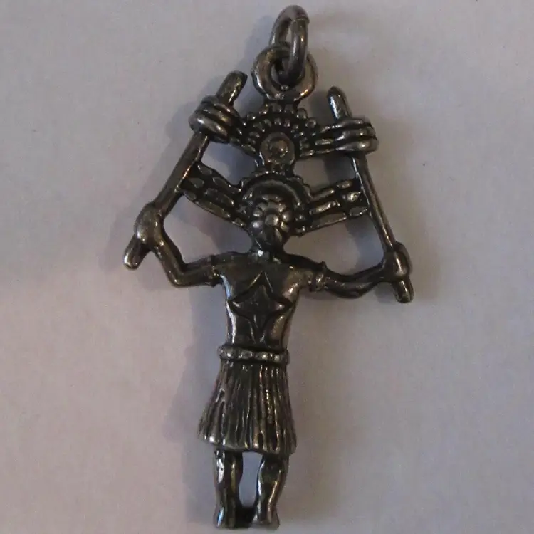 This is an AMAZING 925 sterling silver Native American Kachina dancer doll charm or pendant. It is beautifully designed and amazingly detailed for its size. The charm is about 1.25 inches tall and 0.5 inches wide. It has a loop at the top for easy attachment. It is marked (very tiny) "925" on the bottom of the foot.