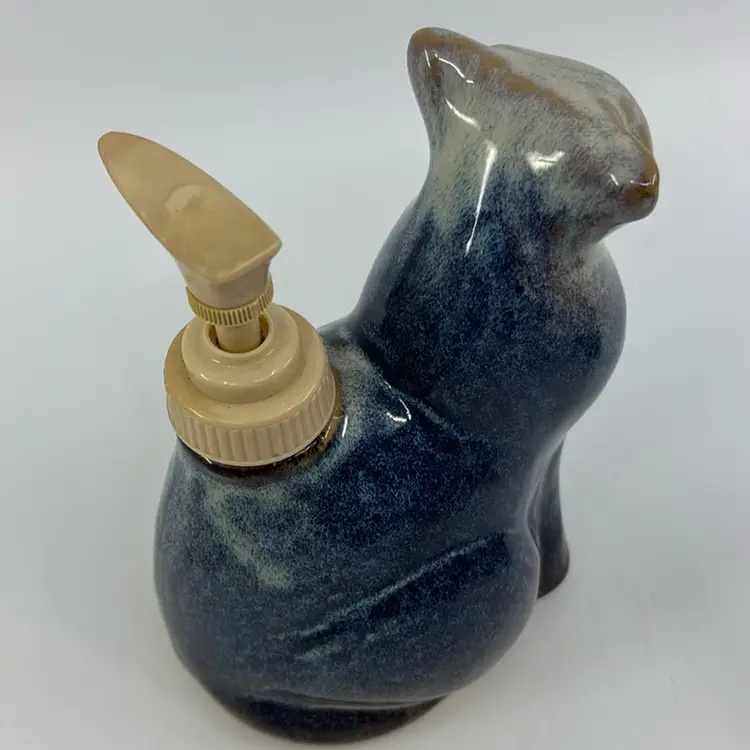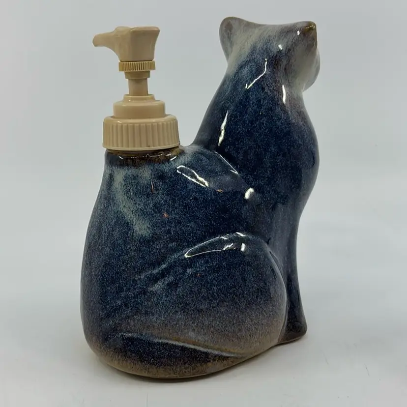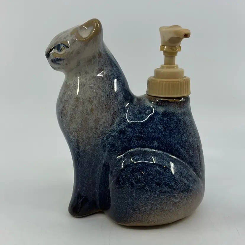 North Eagle Art Pottery Cat Soap Dispenser Signed 5.5”