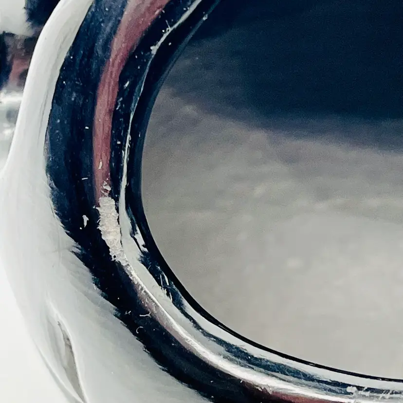 There are some tiny scratches and tiny areas here and there that weren’t glazed properly, etc. In other words, any small defects are from when it was made and NOT areas of damage after it was originally purchased.