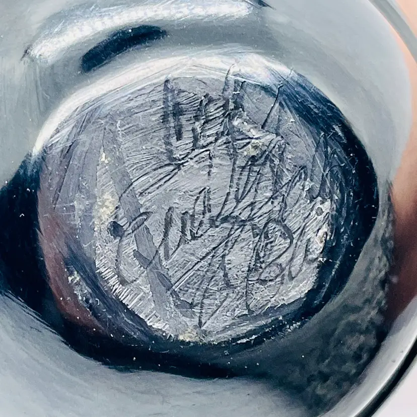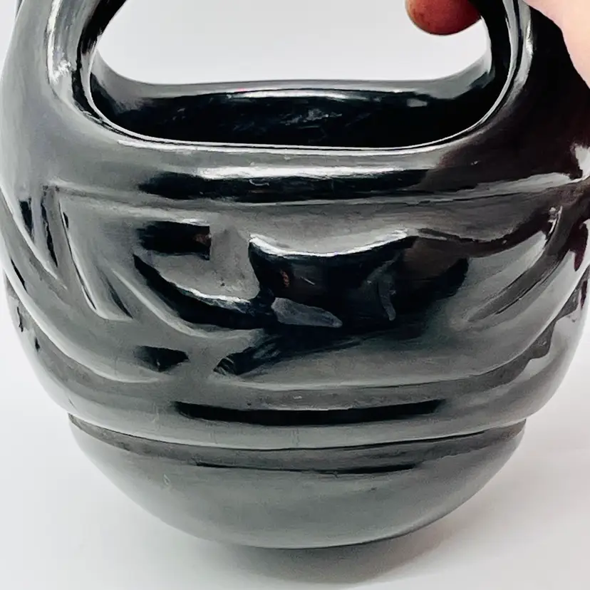 This is a Native American Santa Clara Avanyu Pottery Basket Signed by Celes & Evelyn Tafoya.