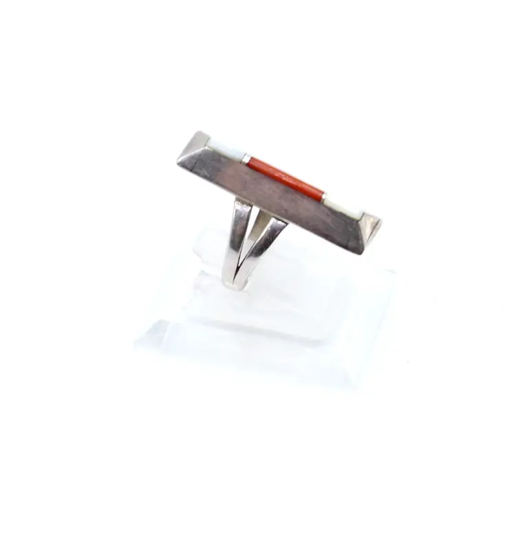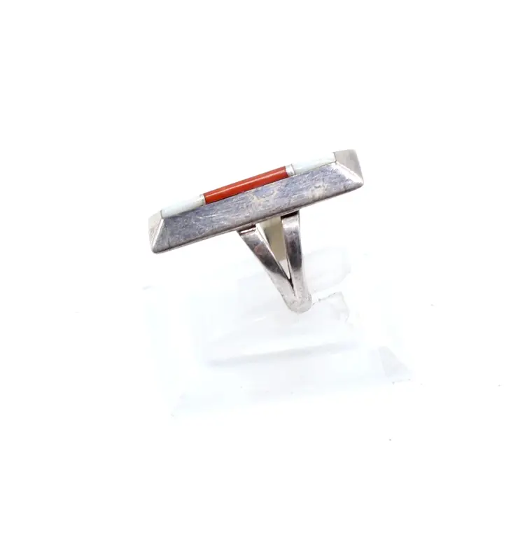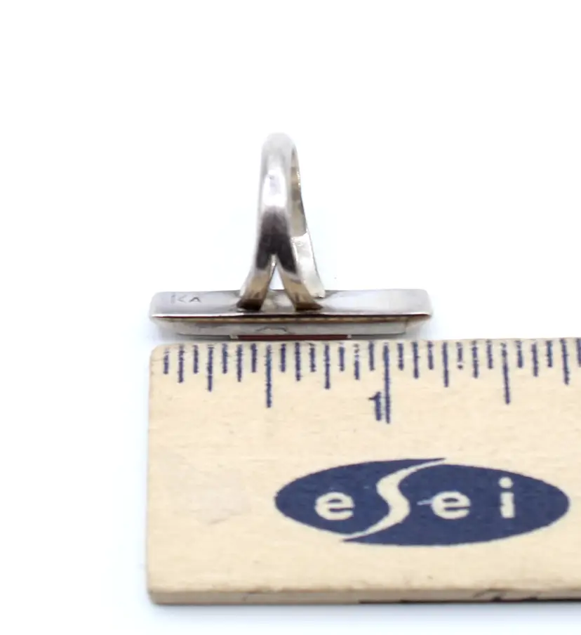 Fantastic inlay signed KA with the A slight offset higher than the K and smaller font, possible Kenneth Aguilar. Inlay is set in a beveled head and split shank.
