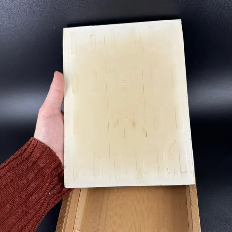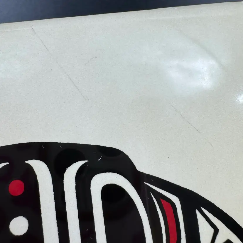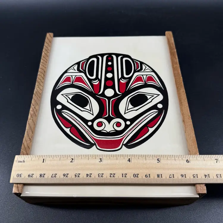 Height is approximately 8” Length is approximately 6.5” Is signed on the tile “Steven C. Evan’s.” Does have a few chips on the tile can be seen in the photos and a few scratches.