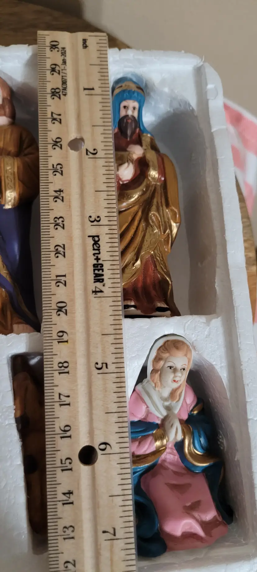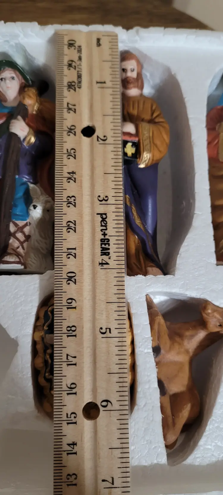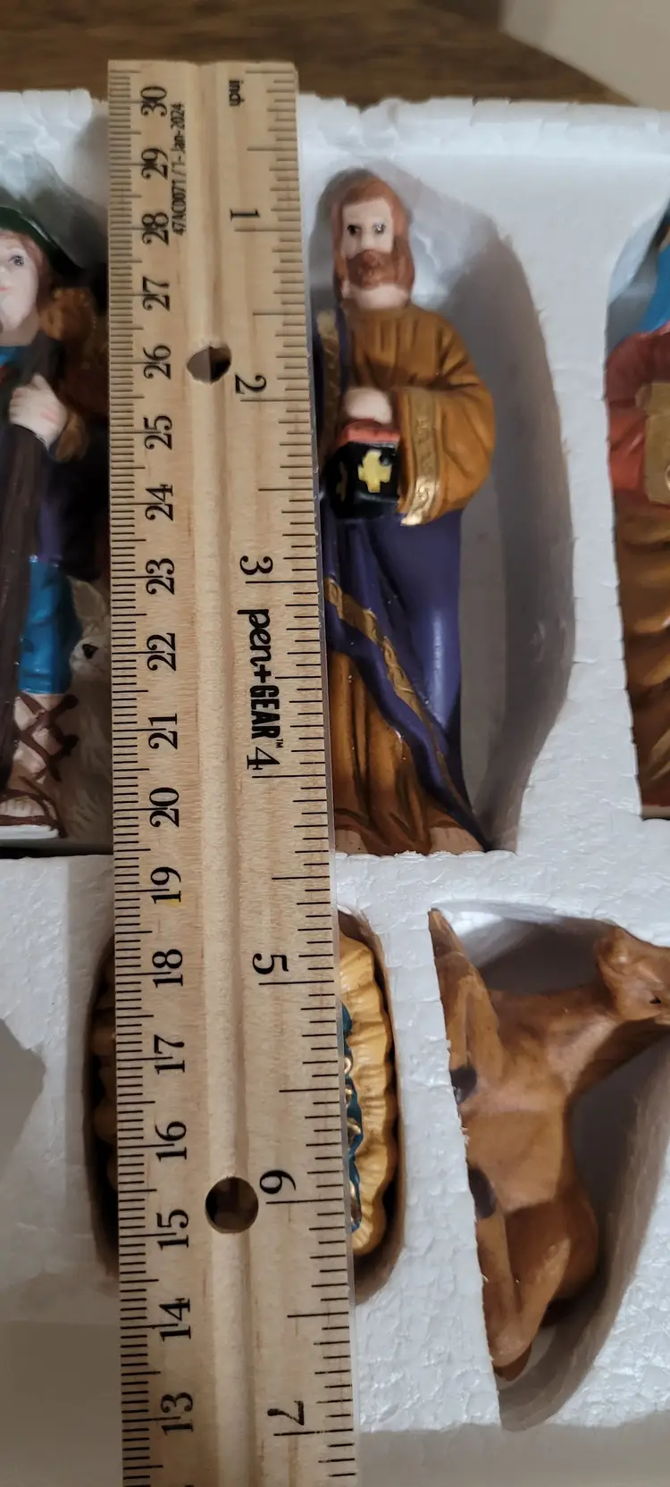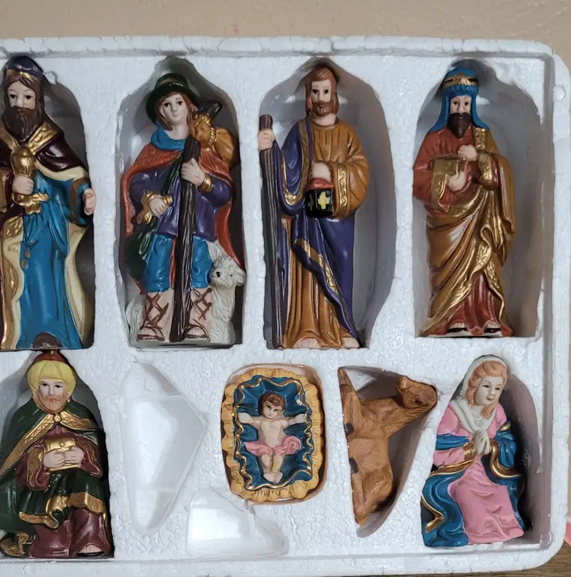 This set of 8 ceramic figurines features characters from the Nativity scene, perfect for collectors or those looking to add a festive touch to their holiday decor. Each piece is crafted from high-quality ceramic, adding a touch of elegance and tradition to any display. This Nativity figurine set is a charming addition to any holiday collection, bringing the story of the Nativity to life through beautifully crafted pieces.