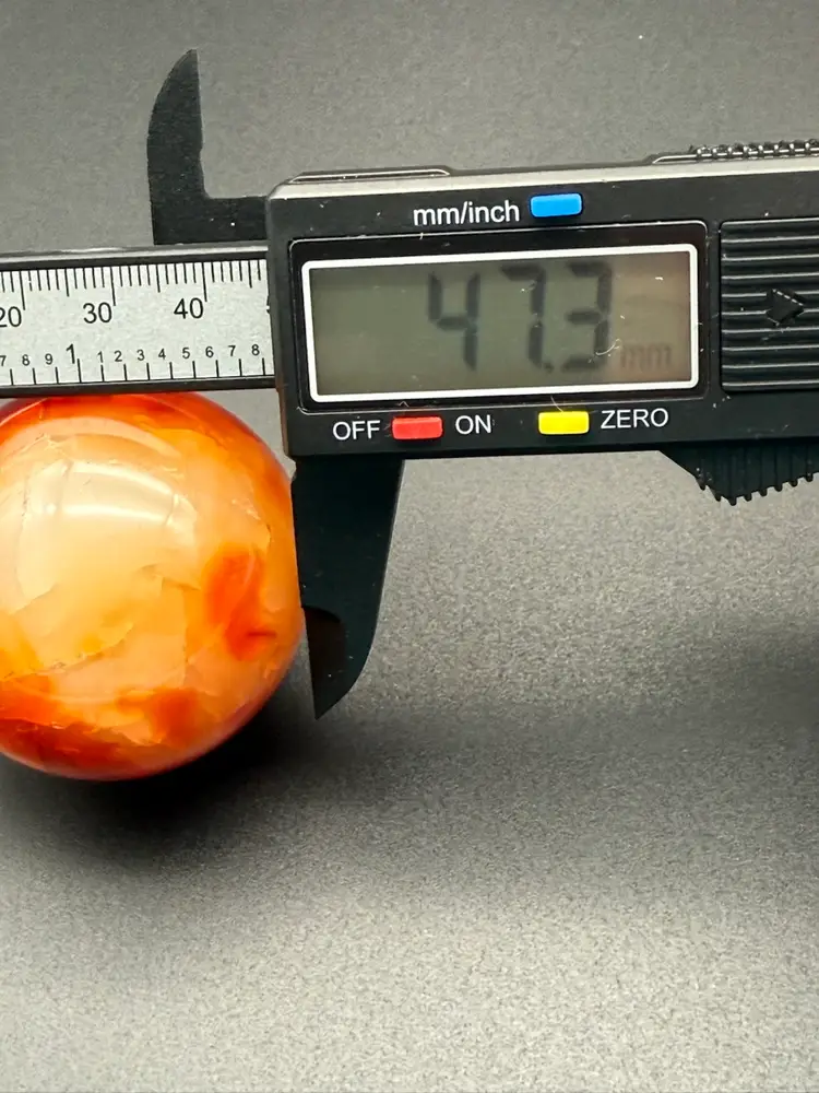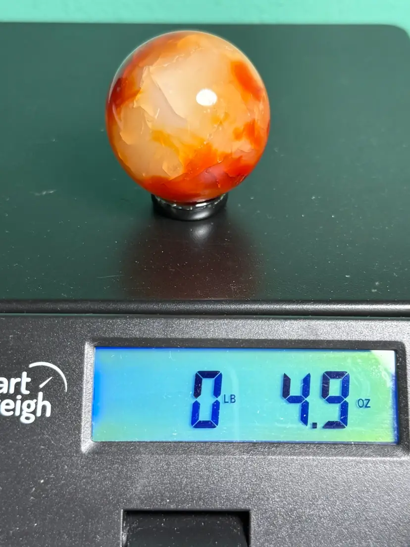 Comes with Hematite stand that can also be worn as a ring, size 8.5. Stones may have natural inclusions, no repairs. Heart measures 1 3/4" x 1 1/2", weighs 1.5oz/42g. Sphere measures 1.86"/47.3mm, weighs 4.9oz/140g