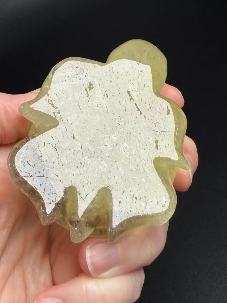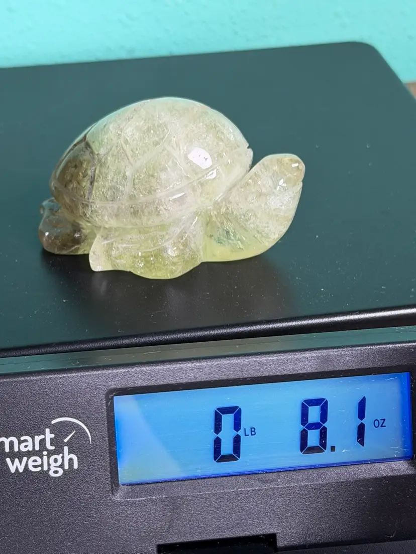 Light Citrine with some Smoky Quartz on the bad side. Stone may have natural inclusions, no repairs. Measures 3" long, 2.25" wide, 1.25" tall, weighs 8.1oz.
