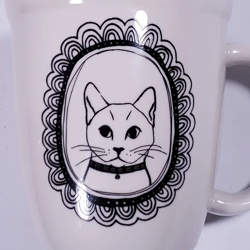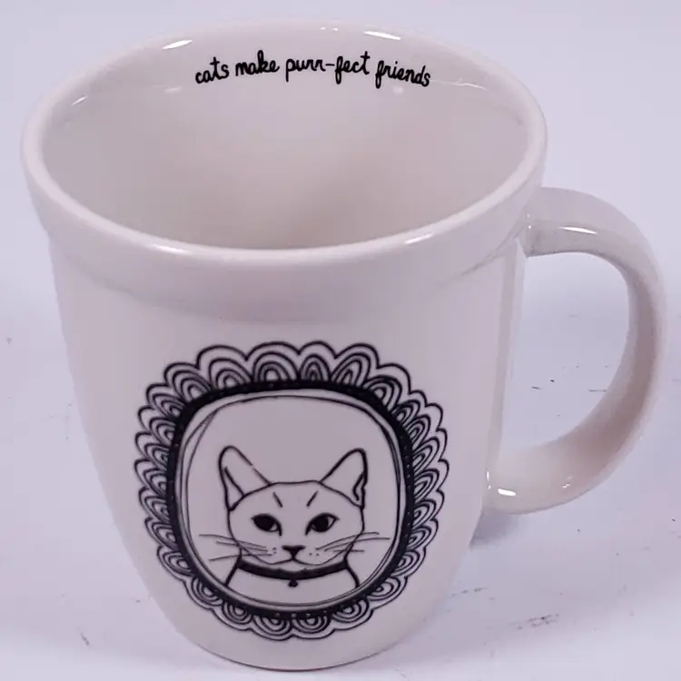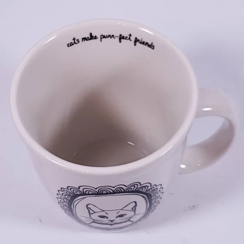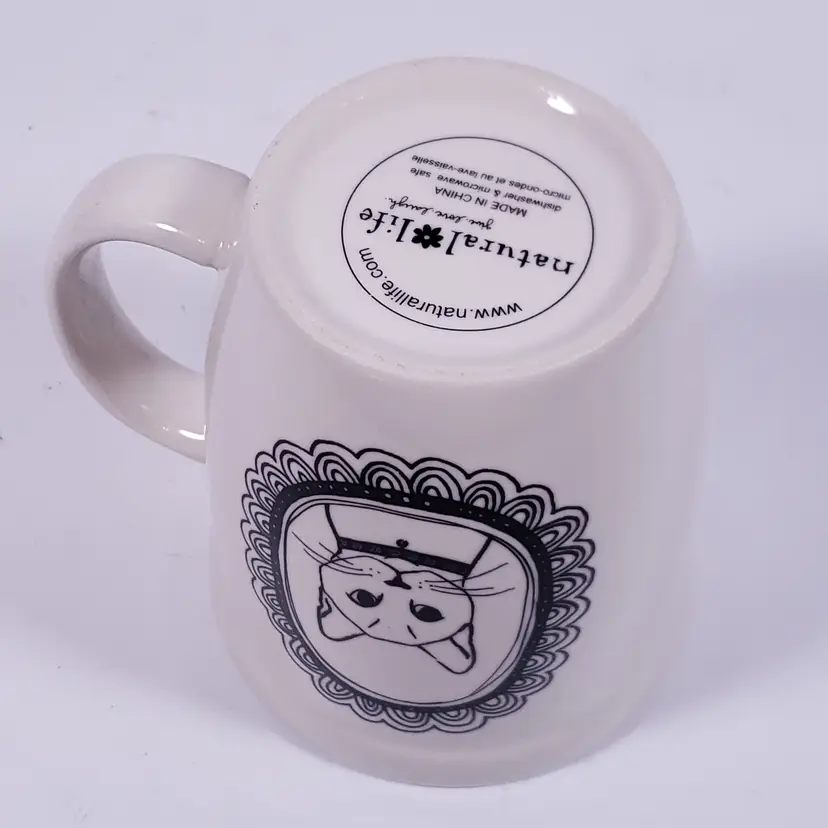 NATURAL LIFE Cats Make Purr-Fect Friends Black White Cat Portrait CERAMIC MUG