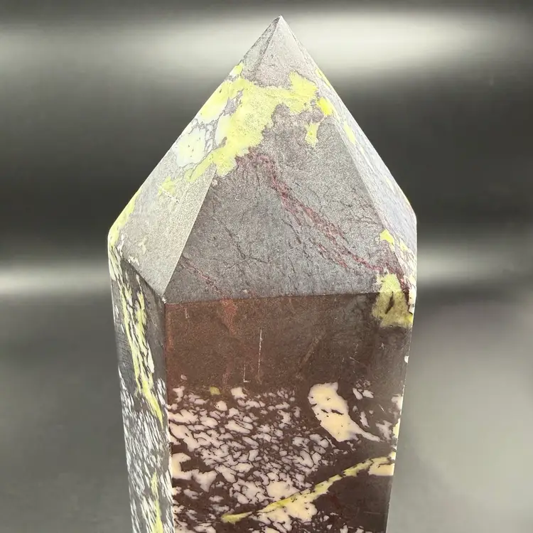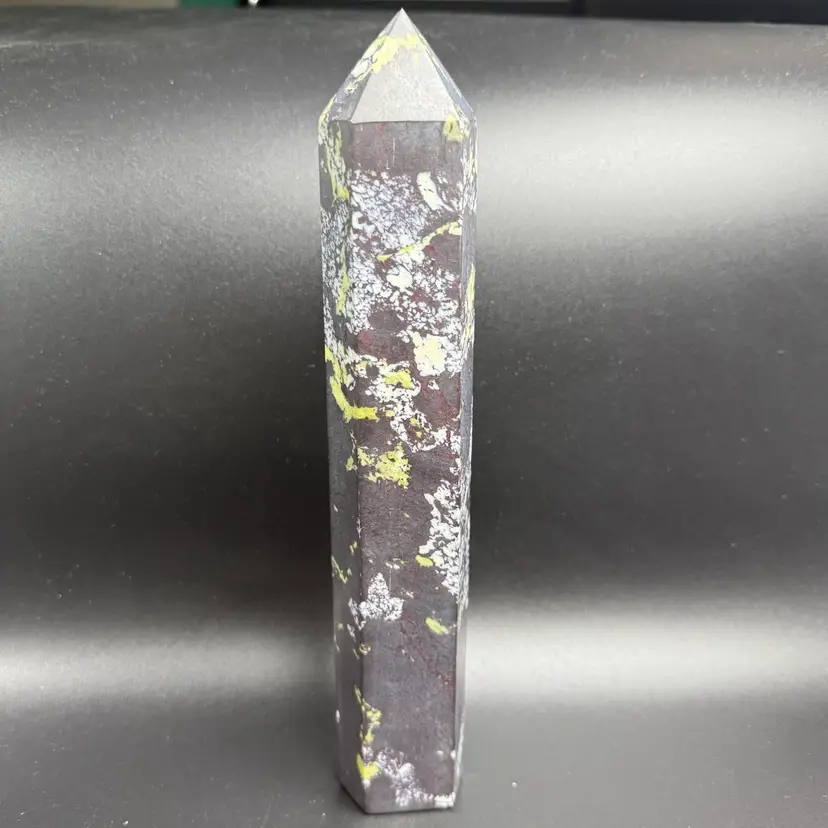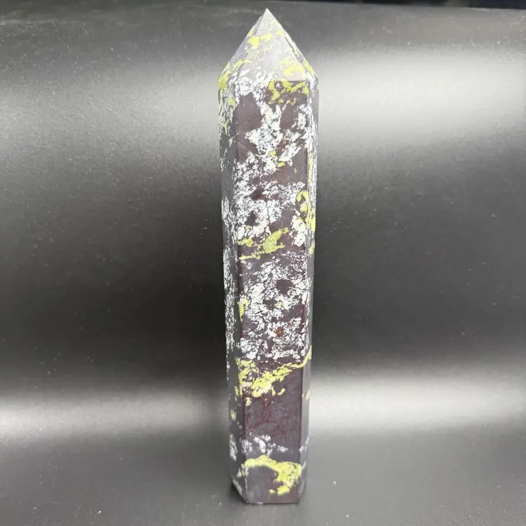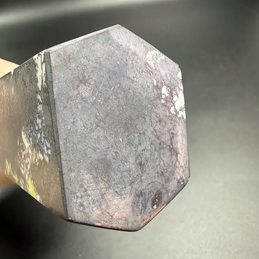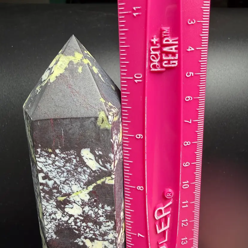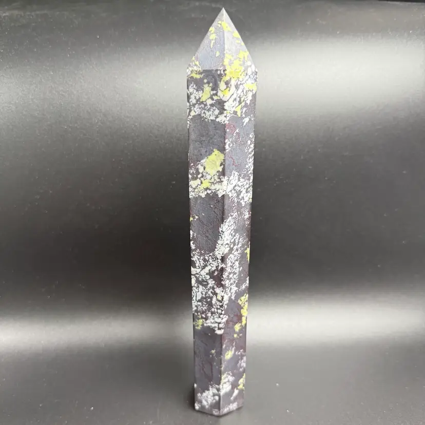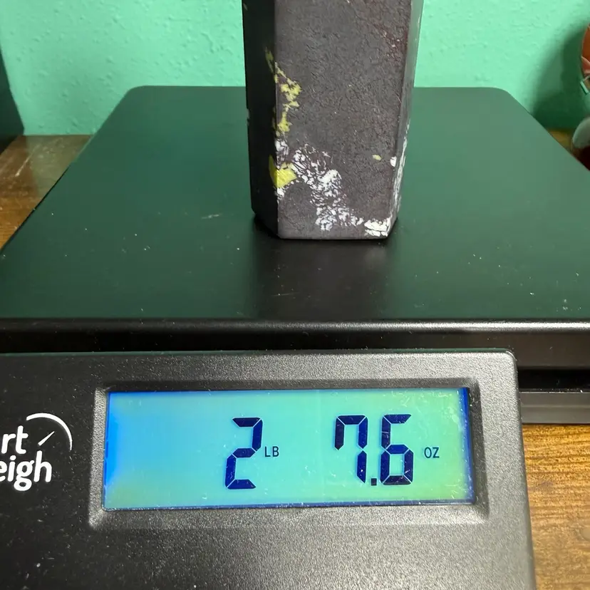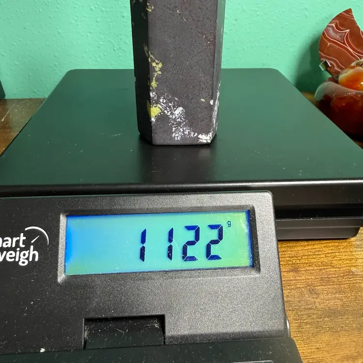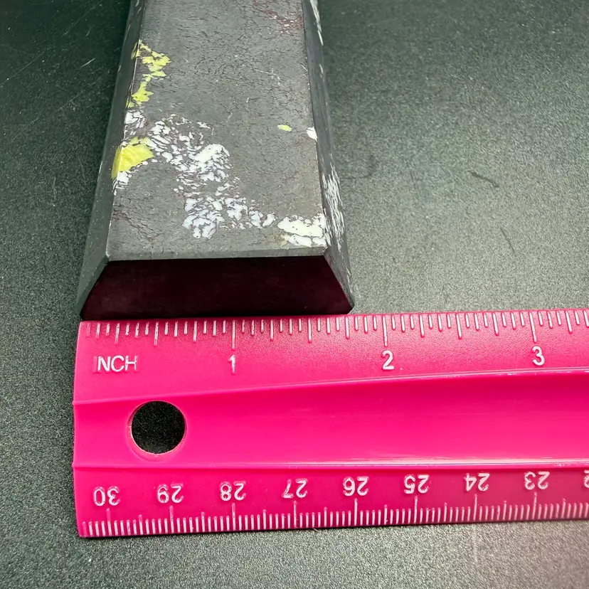 Colors include: grayish black, white, greenish yellow. Stones may have natural inclusions, no repairs. Measures 10 3/4" x 1 3/4", weighs 2lb 7.6oz.