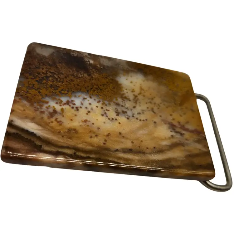 Enhance your wardrobe with this majestic eagle belt buckle. The striking black, silver, and brown design adds a bold statement to any ensemble.