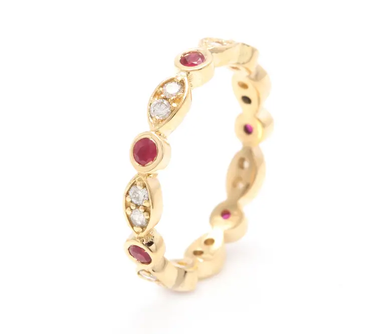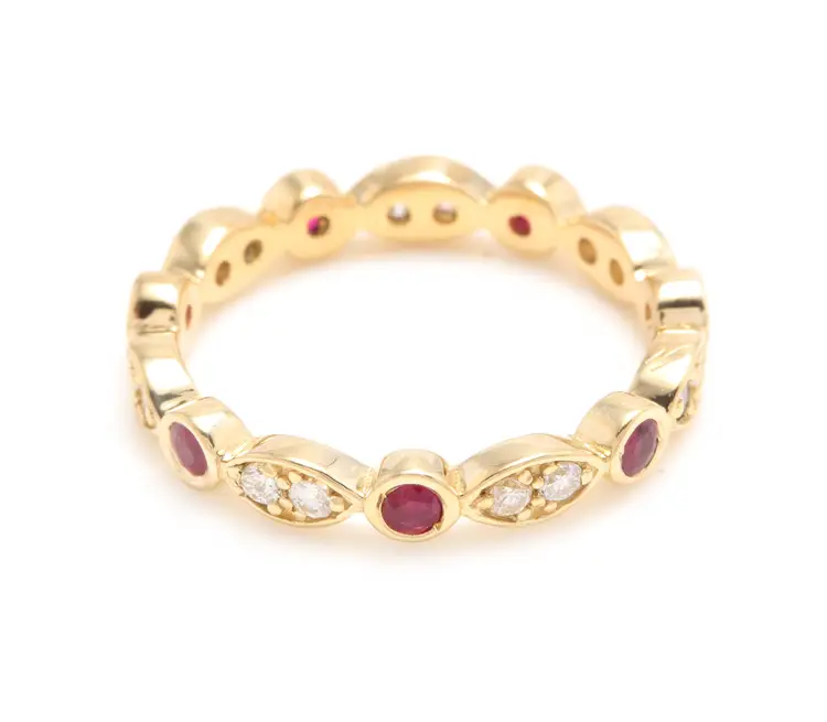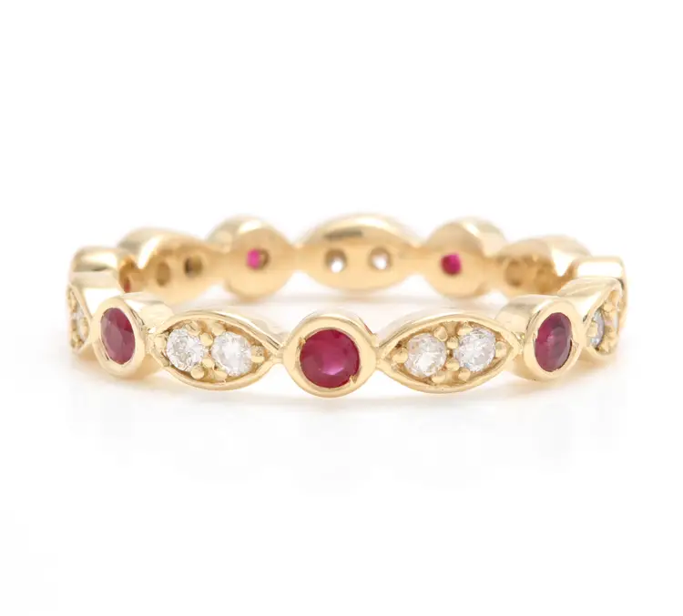 Country/Region of Manufacture: United States Main Stone Color: Red, white Main Stone Treatment: Not Enhanced Metal Purity: 14k Main Stone: Ruby Sizable: Yes Main Stone Creation: Natural Metal: Yellow Gold Ring Size: 6 Total Carat Weight (TCW): 0.65 Main Stone Shape: Round Brand: Unbranded Type: Ring
