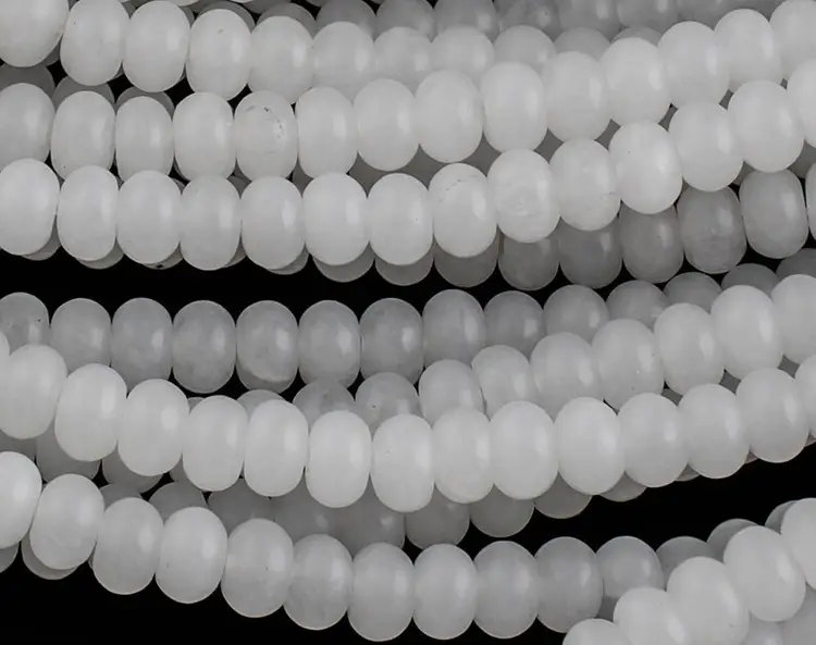 Natural White Jade, High Quality in Roundel, 6mm, 8mm- Full 15.5 Inch Strand-Full Strand 15.5 inch Strand Smooth Gemstone Beads