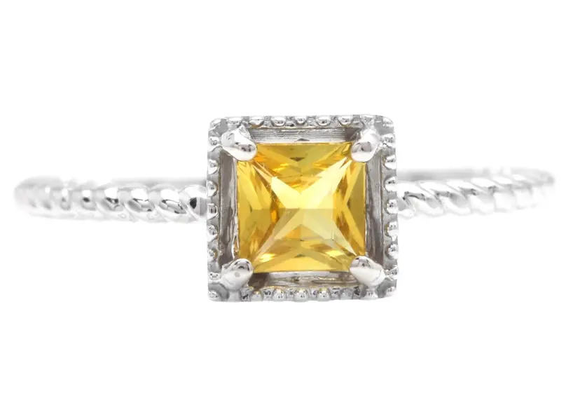 Main Stone Creation: Natural Sizable: Yes Material: Gemstone Main Stone Color: Yellow Metal: White Gold Modified Item: No Main Stone: Sapphire Ring Size: 6.5 Brand: Unbranded Main Stone Treatment: Heating Type: Ring Metal Purity: 14k Main Stone Shape: Princess Base Metal: Yellow Gold Theme: Nature Total Carat Weight (TCW): 0.50 Country/Region of Manufacture: United States
