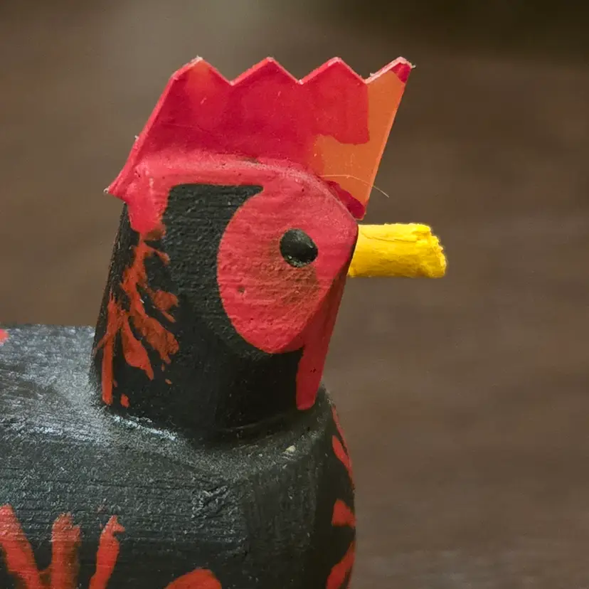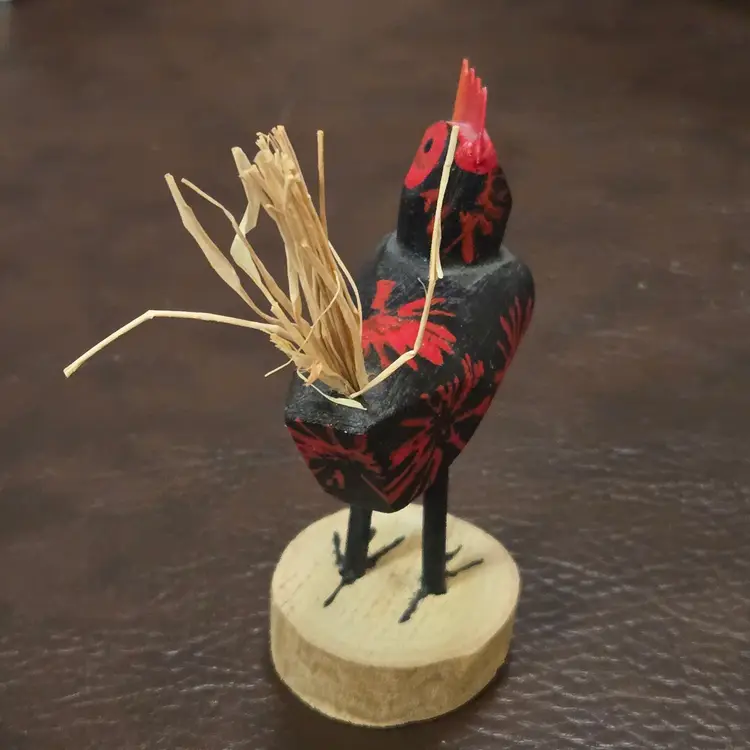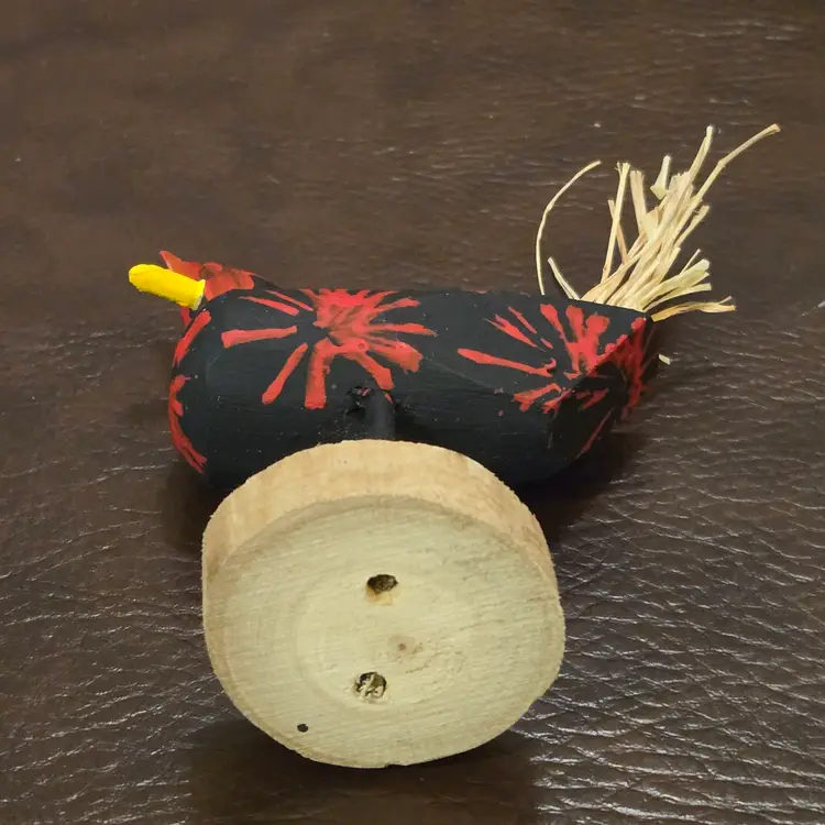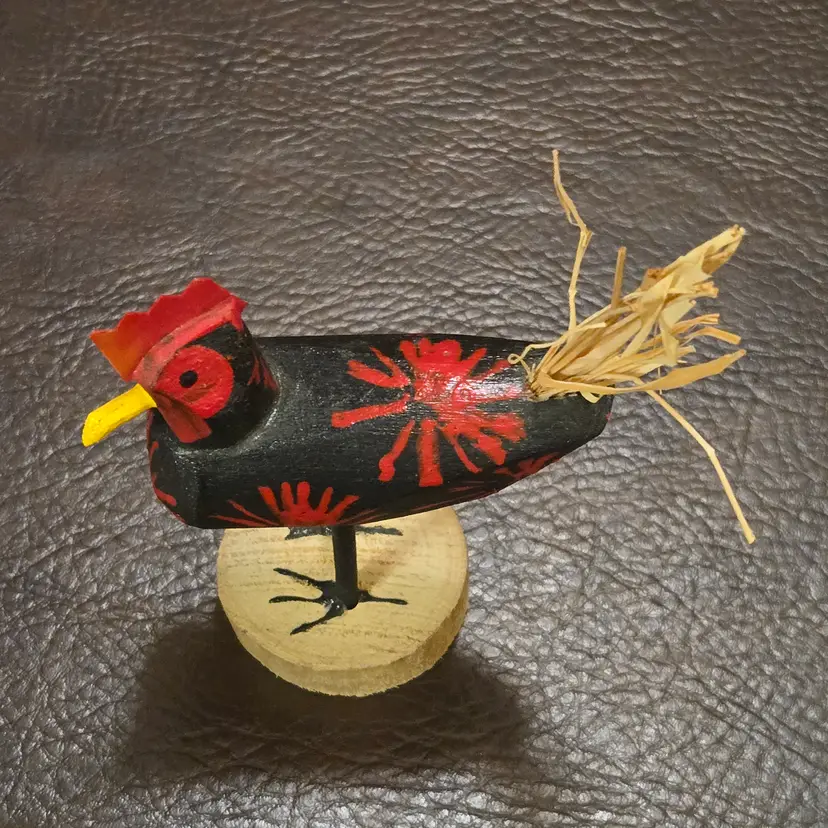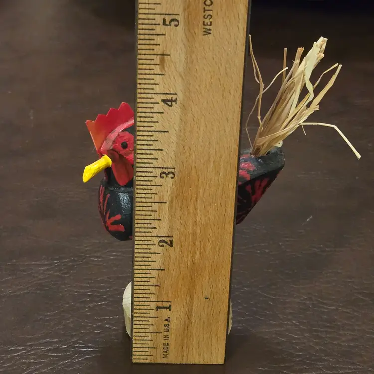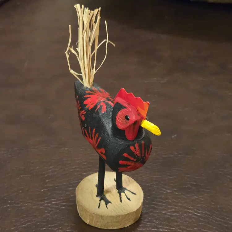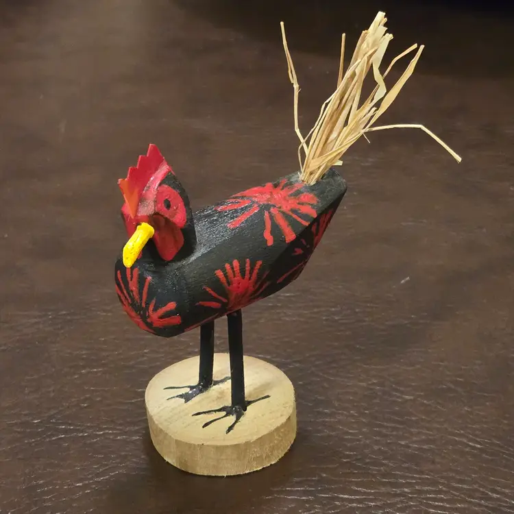 Navajo Folk Art Chicken by Les Herbert Native American 3¾” with Ephemera Unsigned. From Fred Harvey with small piece of paper as artist description. Used condition with small flakes of missing paint, straw tail has creases, folds, bends, etc. along with artist flaws. Please view all the photos and read the entire item description and please ask any questions prior to purchase when possible.
