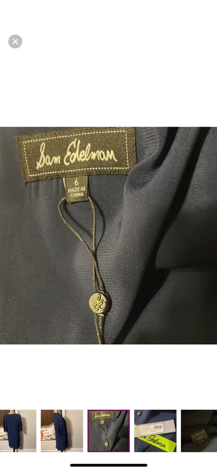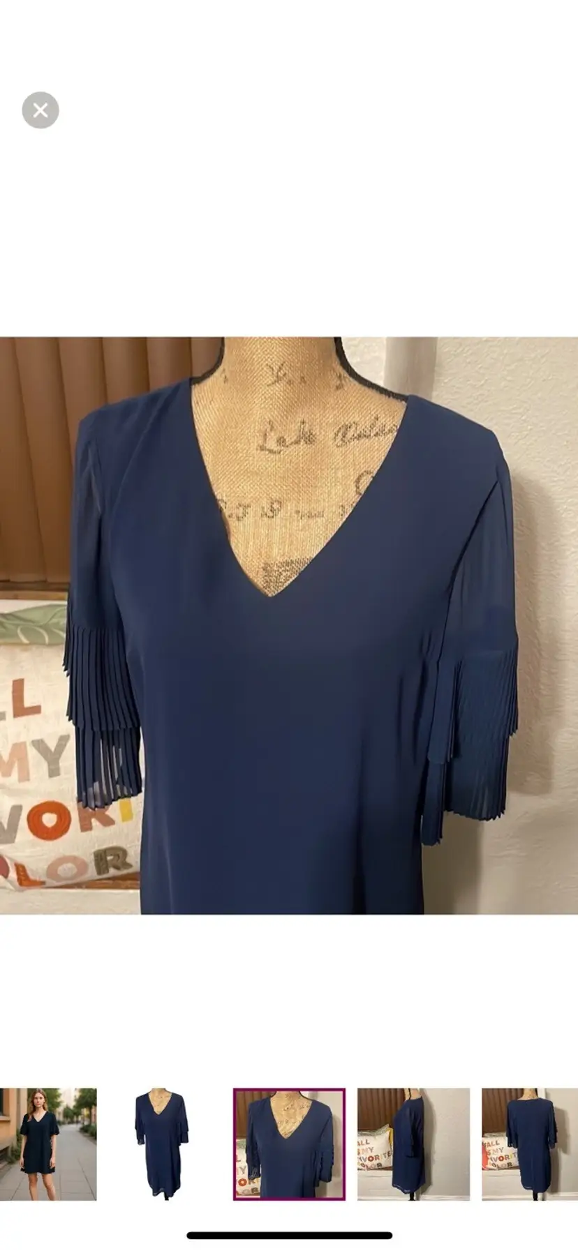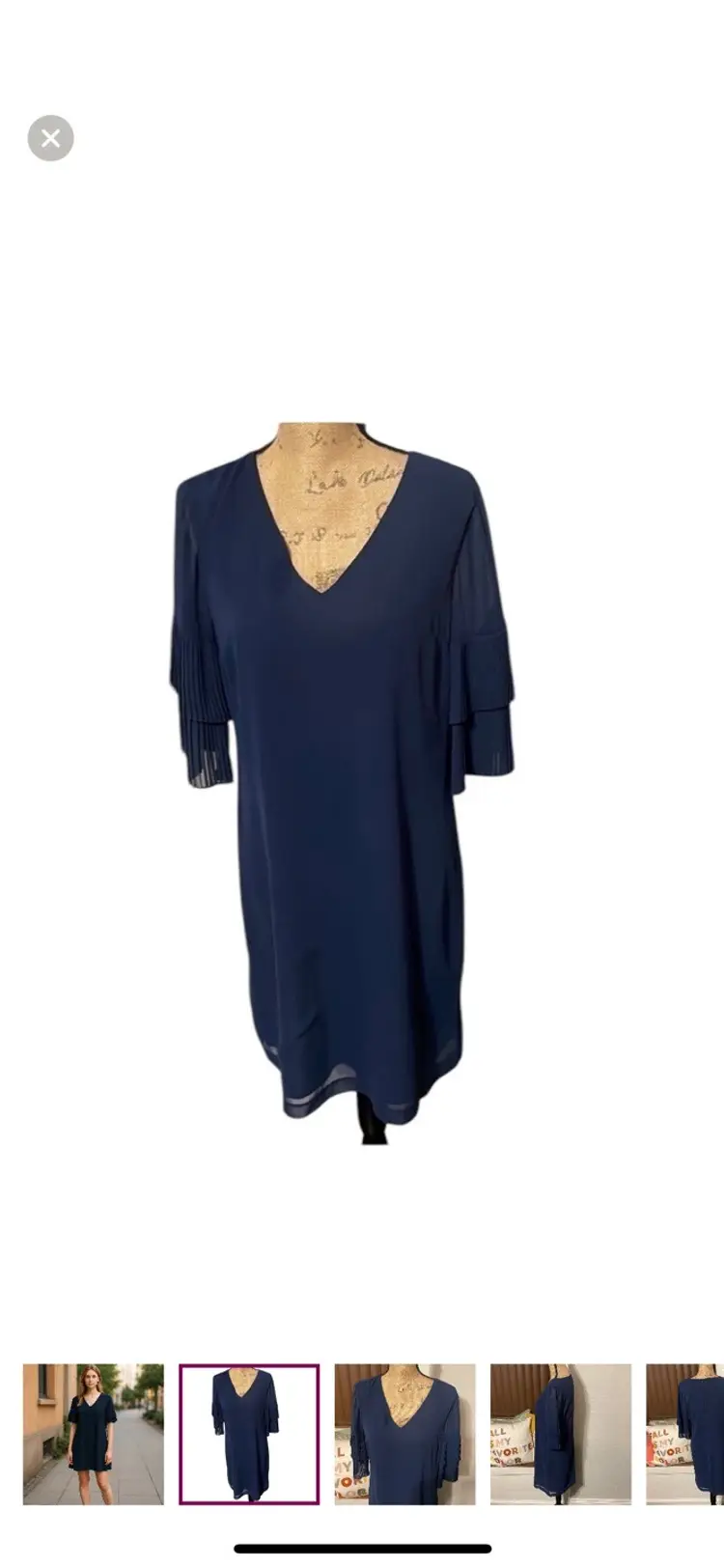 Gorgeous lined navy blue sheath dress with statement sleeves and a back zipper. Sam Edelman, size 6 - NWT $128 retail Shell & Lining - 100% polyester P2P - 19"; Shoulder to hem length - 36"