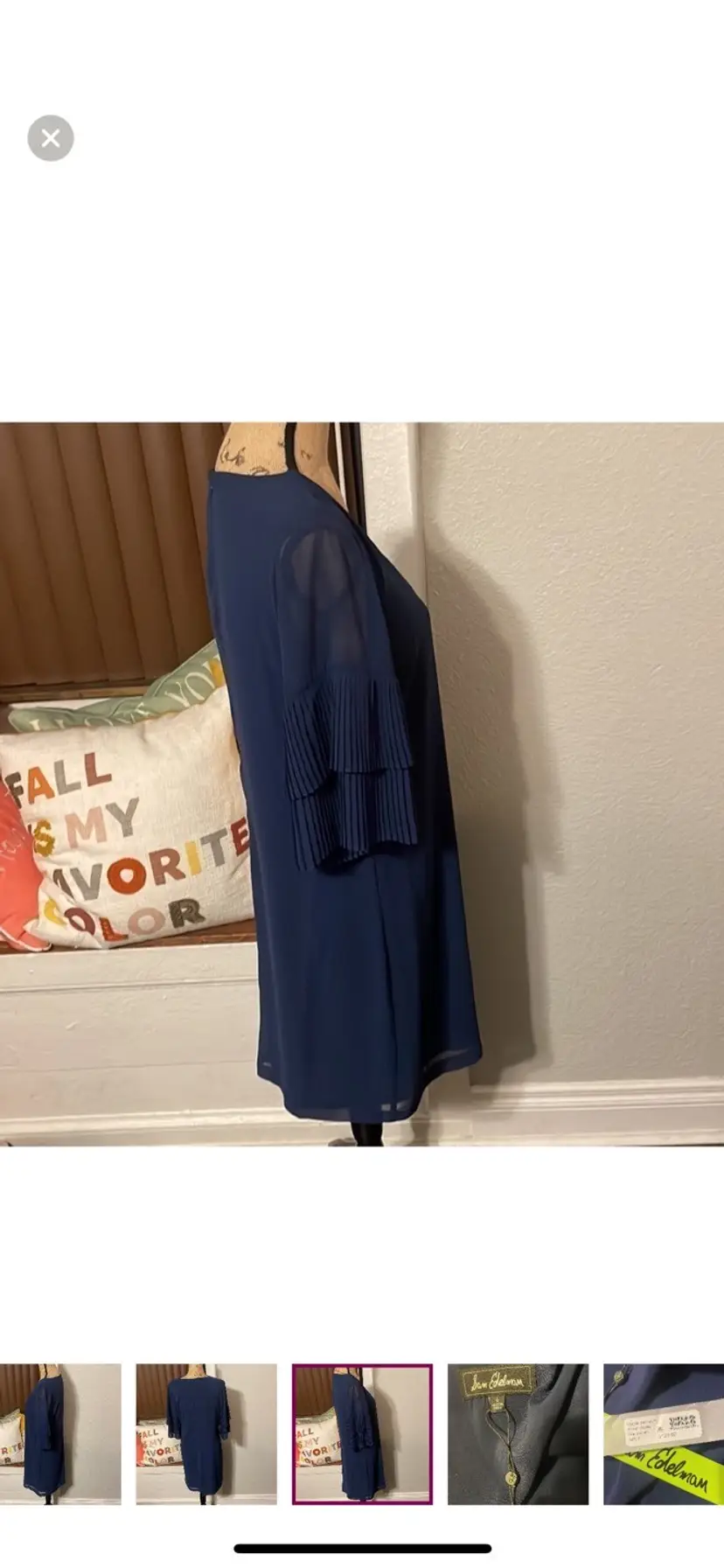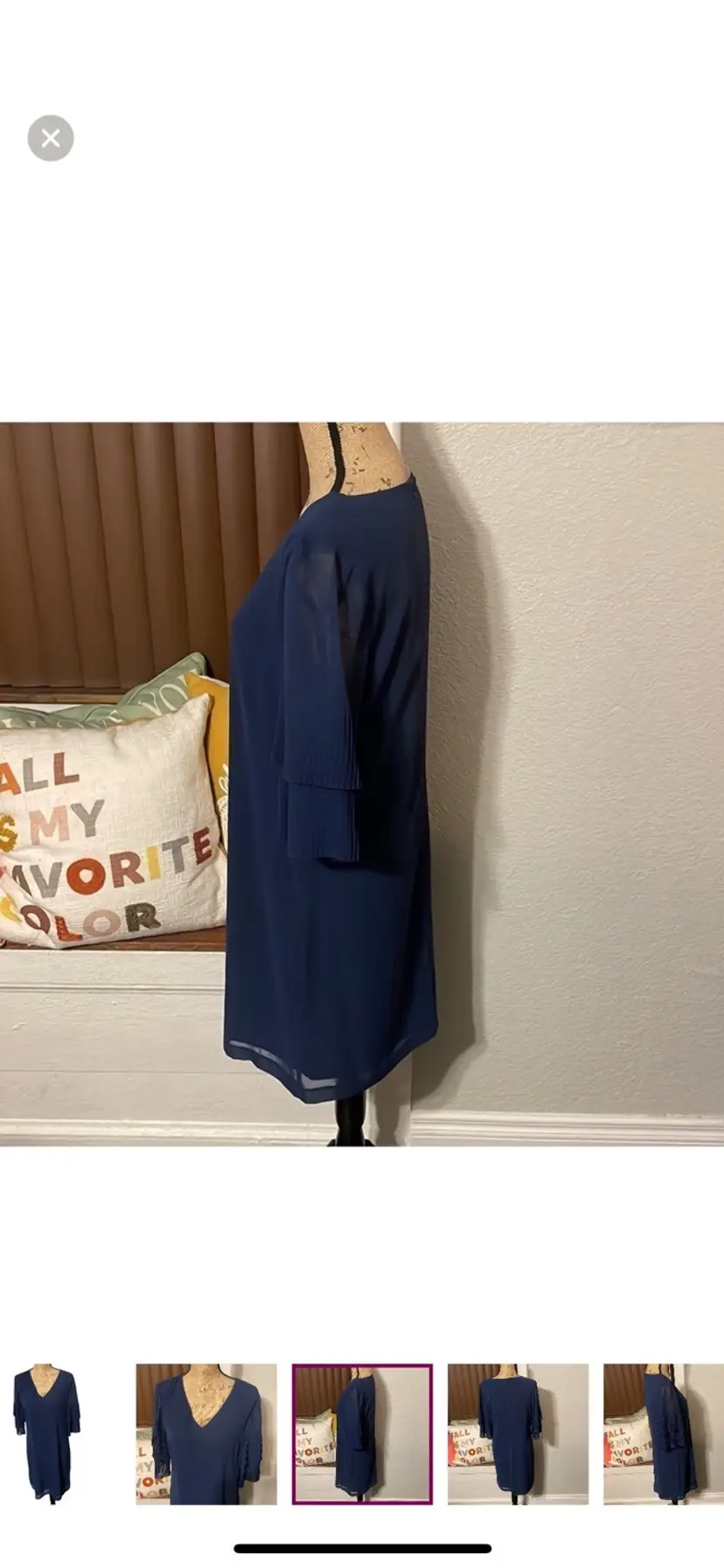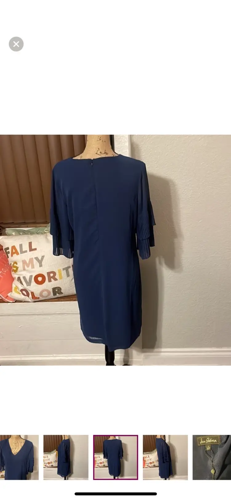 Gorgeous lined navy blue sheath dress with statement sleeves and a back zipper. Sam Edelman, size 6 - NWT $128 retail Shell & Lining - 100% polyester P2P - 19"; Shoulder to hem length - 36"