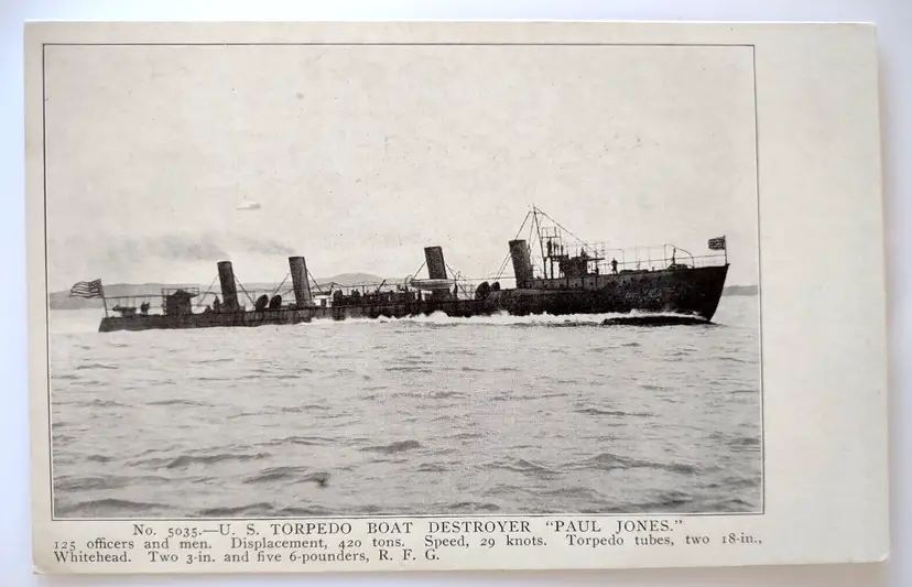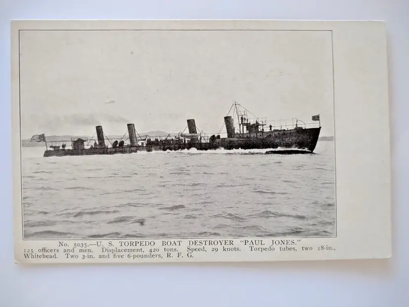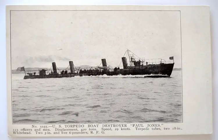 Unit of Sale: Single Unit Number of Items in Set: 1 Occasion: Greetings Signed: No Size: Standard (5.5 x 3.5 in) Custom Bundle: No Material: Paper Year Manufactured: 1907 City: Unknown Original/Licensed Reprint: Original Brand/Publisher: Edward M. Mitchell Subject: Ship Continent: North America Type: Printed (Lithograph) Era: Divided Back (1907-1915) Country: United States Theme: Nautical, People, Transportation, Travel, Ships, Boats, Warship, Naval, Crew, Torpedo Boat, Torpedos, Destroyer, Paul Jones Region: Unknown Features: Vintage Time Period Manufactured: 1900-1919 Country/Region of Manufacture: Unknown Postage Condition: Unposted