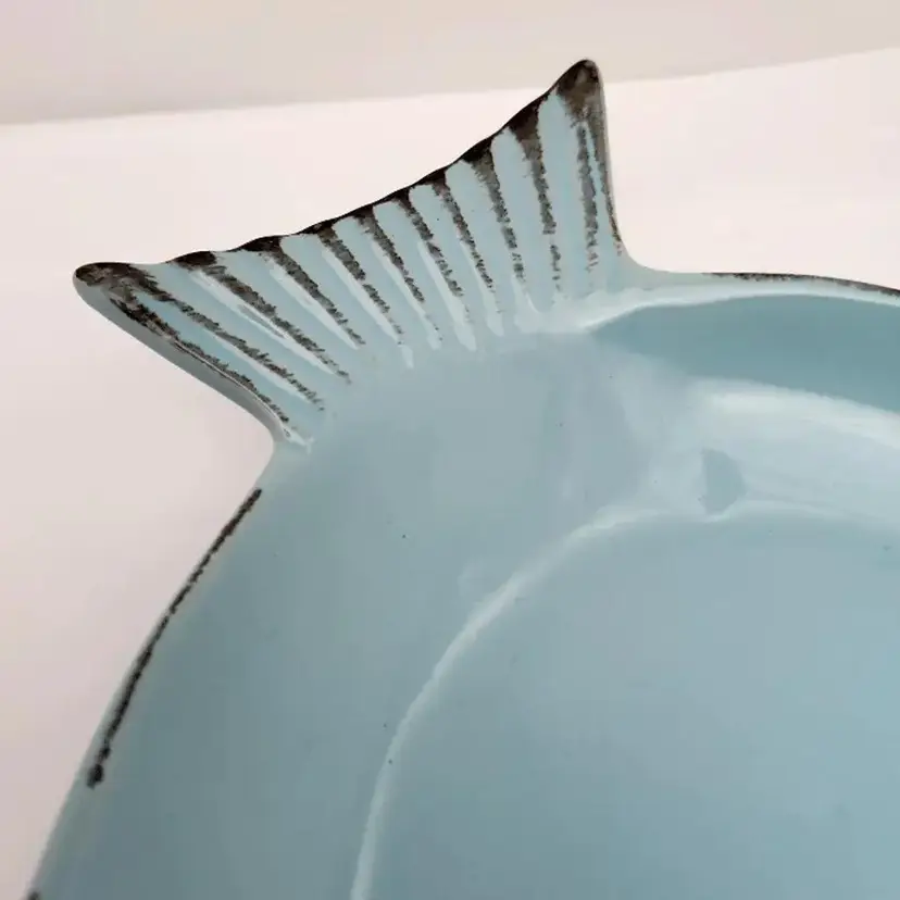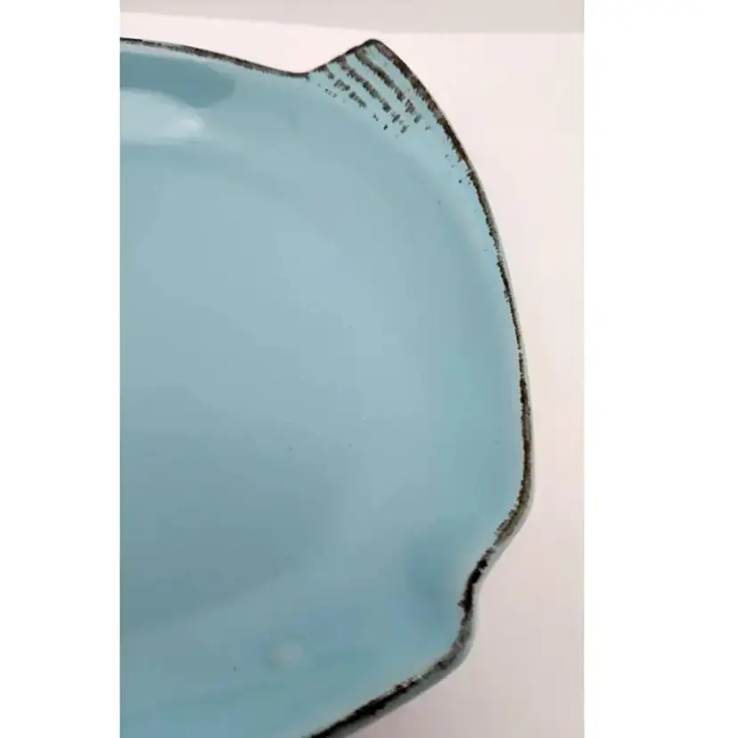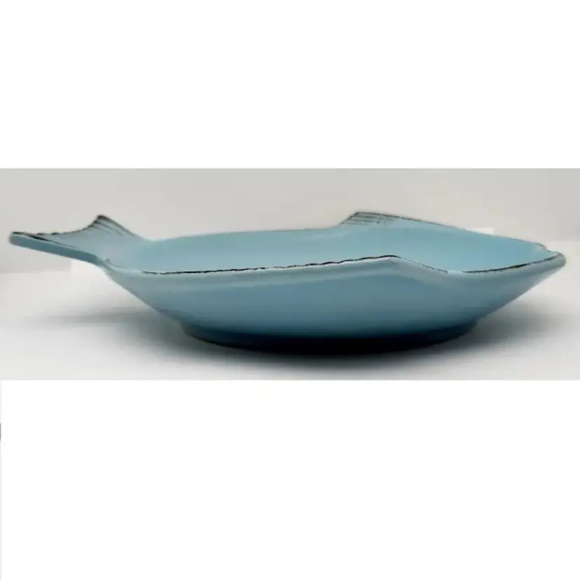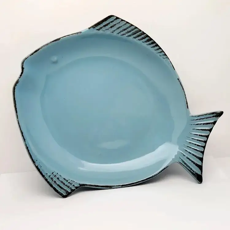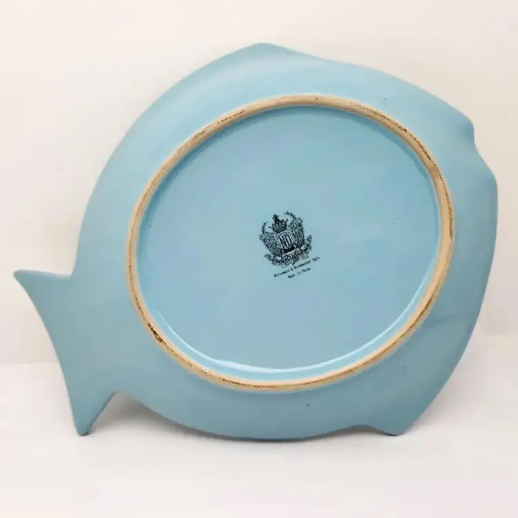 This plate is about 9.5" wide x about 8.25" wide x about 1.75" high at the tail end. The marking on the back states that this is dishwasher and microwave safe.
