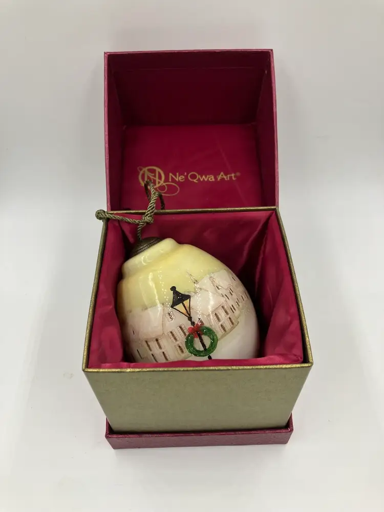 From Google, "Ne'Qwa Art is a brand specializing in high-quality, hand-painted glass ornaments and gifts, created using a centuries-old Chinese art form called "Naqua" or reverse painting. Talented artisans use specially designed brushes and tools to meticulously paint intricate designs on the inside of mouth-blown glass, working in reverse to create stunning original artwork. "