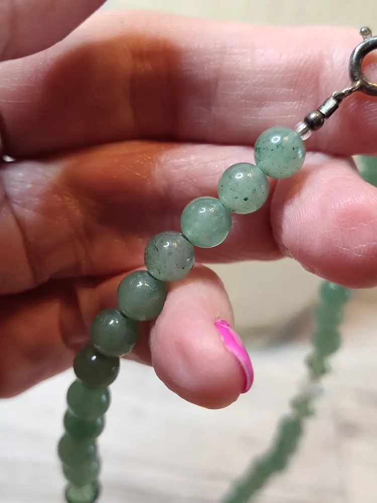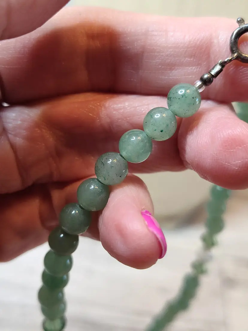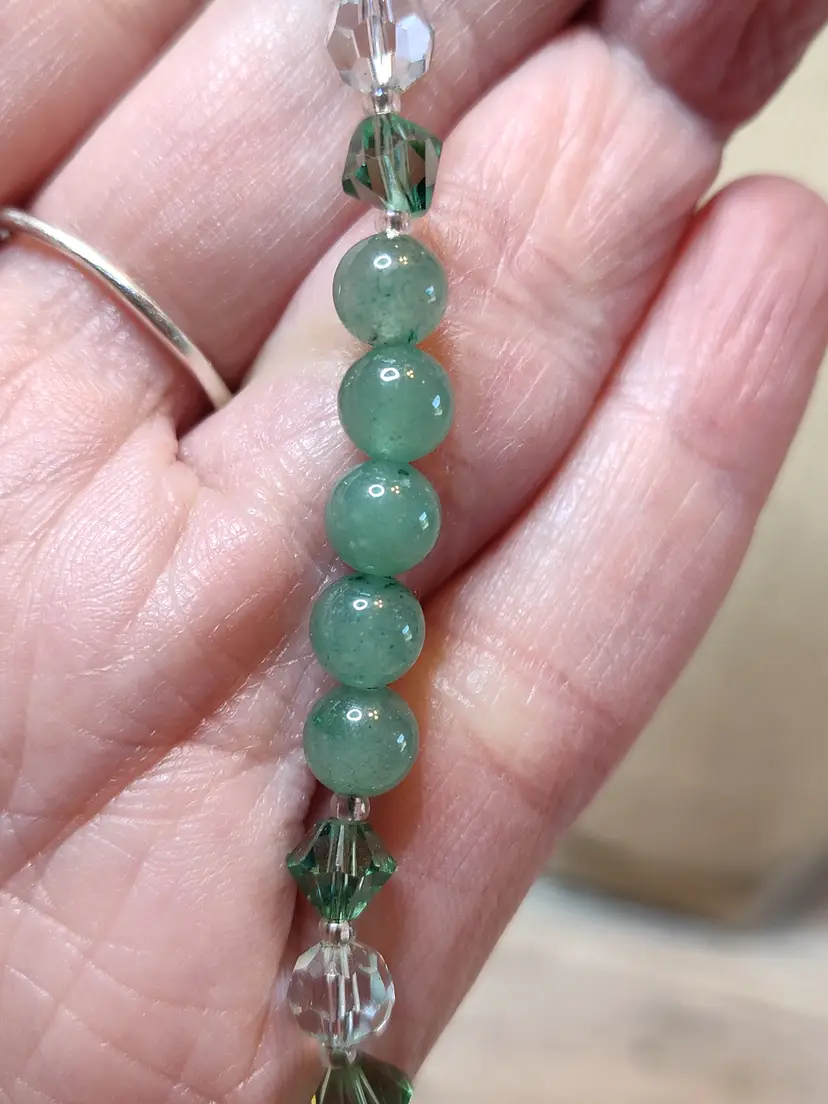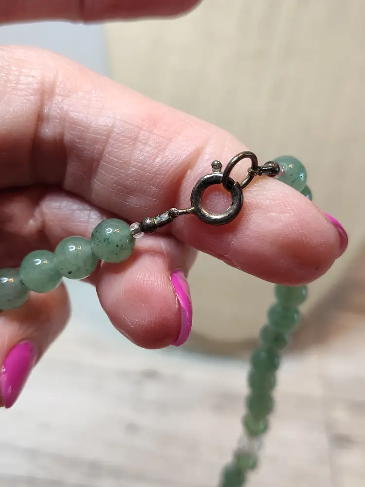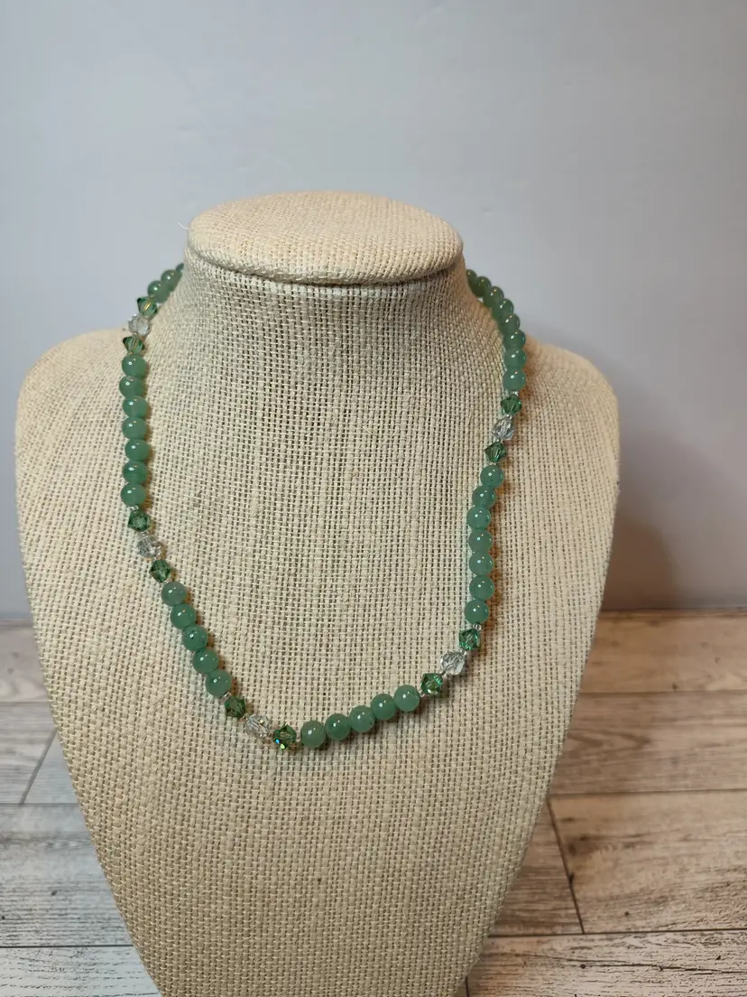 15” green jadeite bead necklace with clear & green faceted glass bead accents