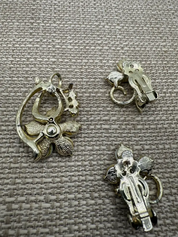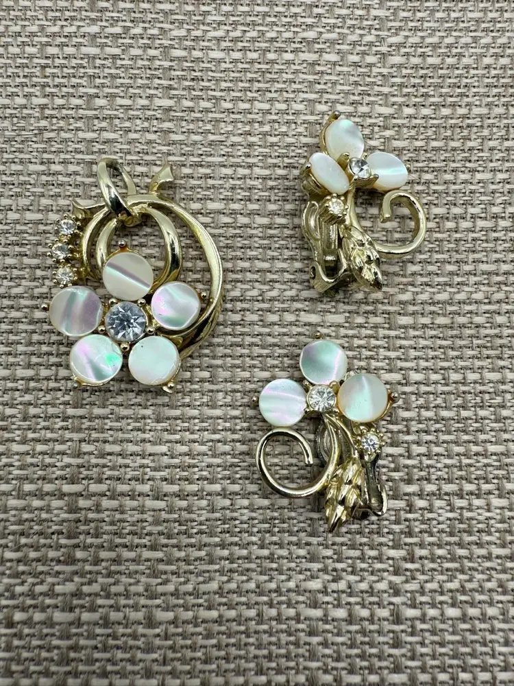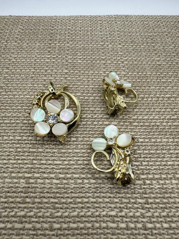 Set of necklace and clip earrings Gold tone 1/2” earrings 3/4 “ necklace faux pearl and glass