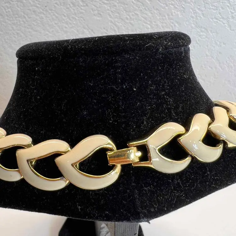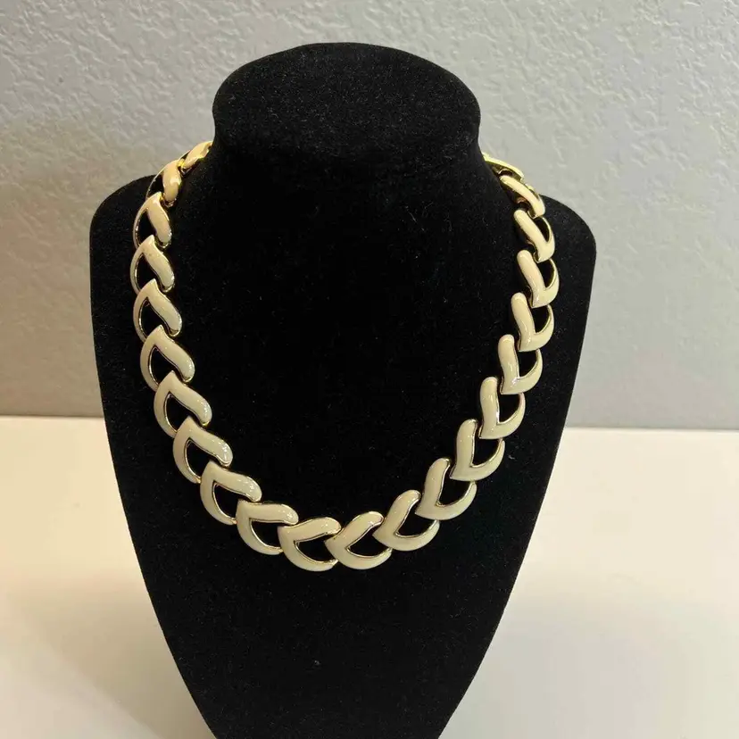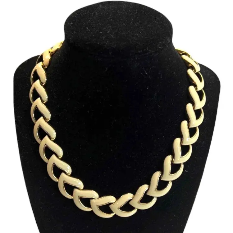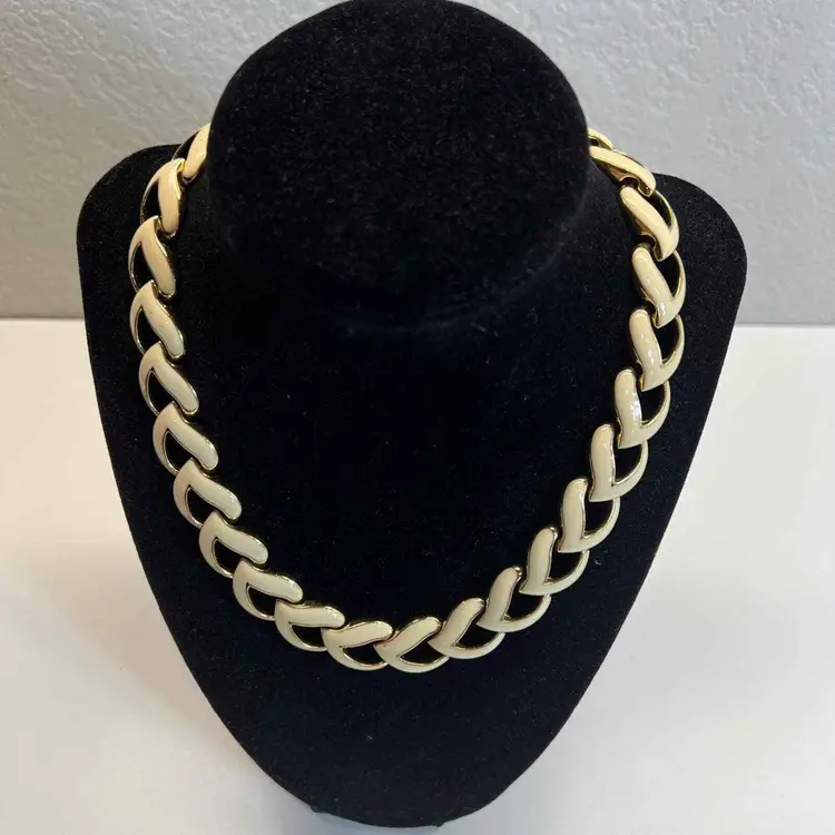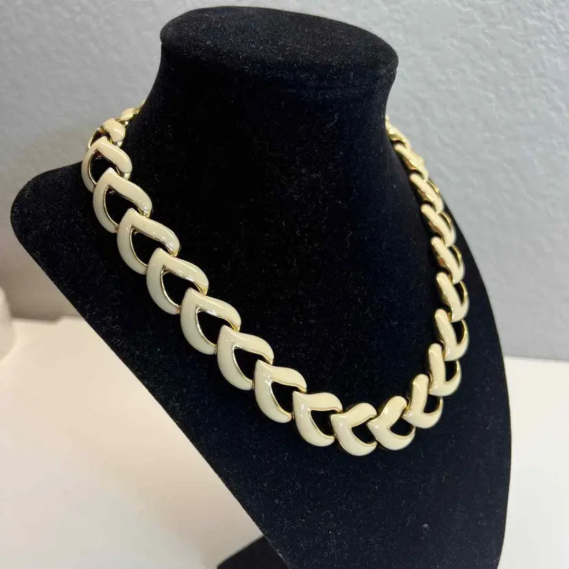 Main Stone Color: Cream Metal: White Gold Plated Vintage: Yes Material: Enamel Main Stone: No Stone Necklace Length: 20 in Secondary Stone: No Stone Brand: Unique Vintage Style: Chain Country of Origin: United States Antique: No Color: Cream Theme: Retro Type: Necklace