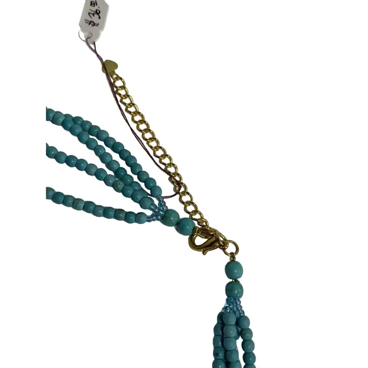 Turquoise & Pearl 4-Strand Boho Necklace Features: