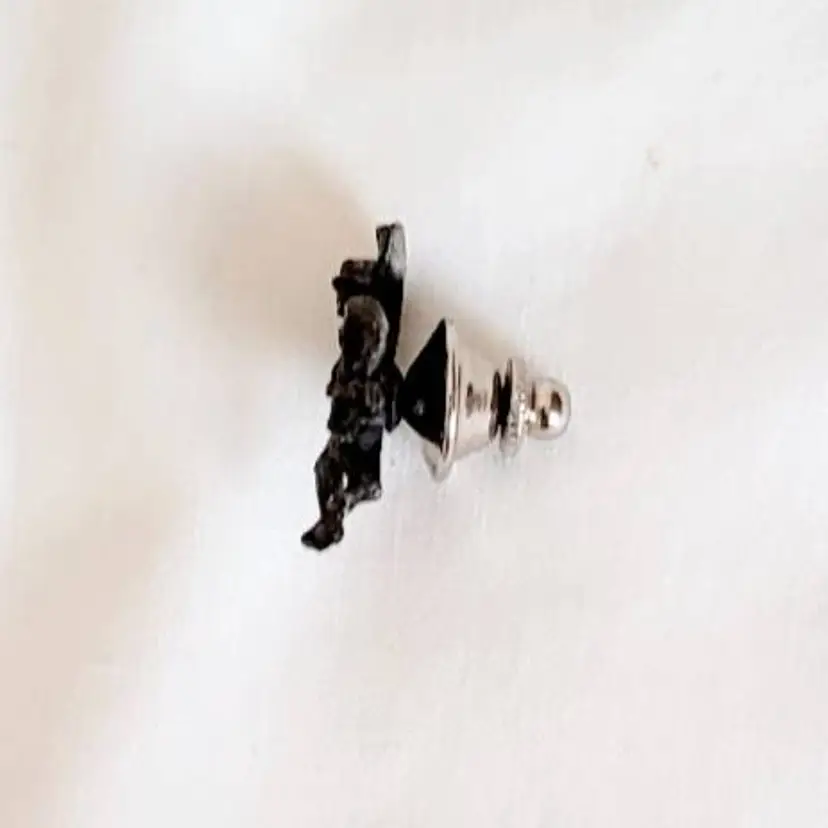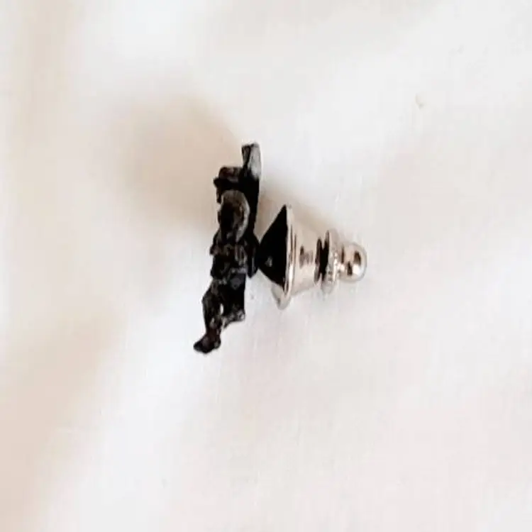The metal necktie pin is 3/4 in. tall and 1/2 in. wide. It is in excellent condition.