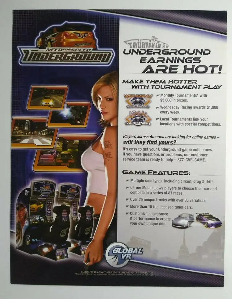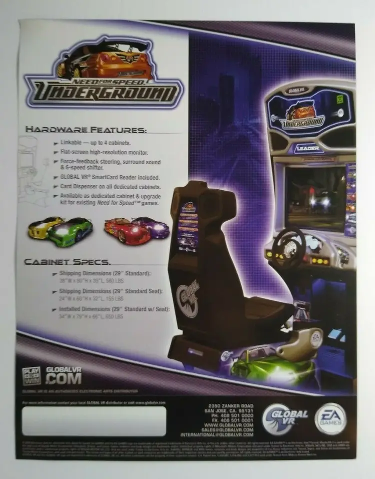 Arcade: Flyer Modified Item: No Country/Region of Manufacture: United States Original/Reproduction: Original Year: 2008 Game Title: Need For Speed Carbon Brand: Global VR