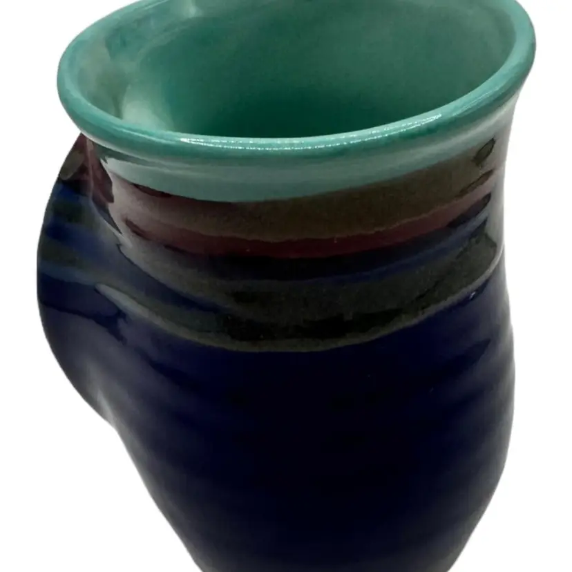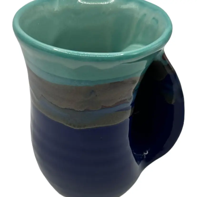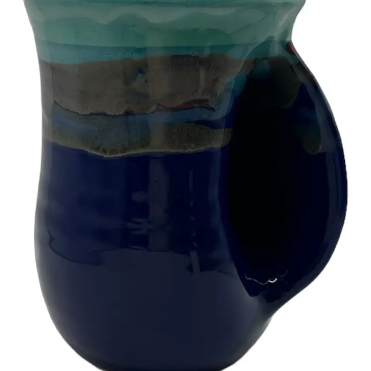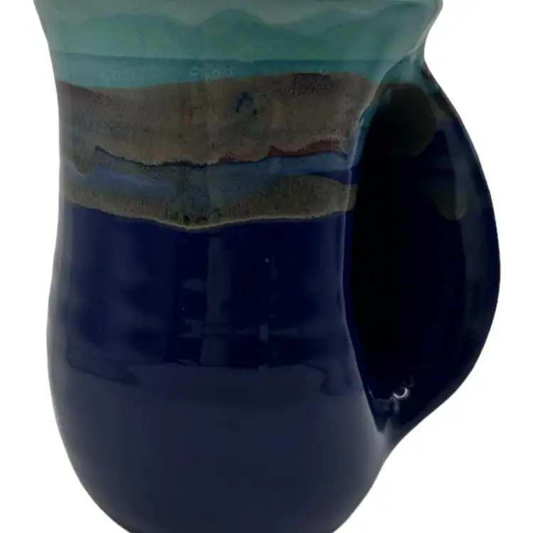 mug has a cozy, wrap-around fit and warms your hand from the hot beverage inside. 5" tall with no damage. Made in the USA by the Neher Family at Clay in Motion studio in Oregon; each piece is hand signed and unique.