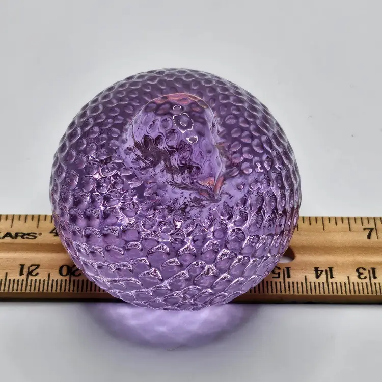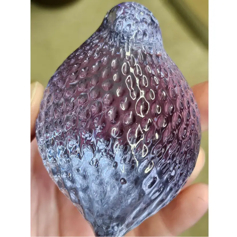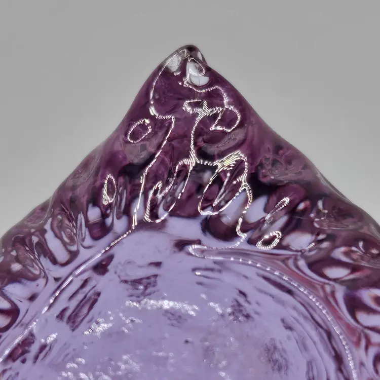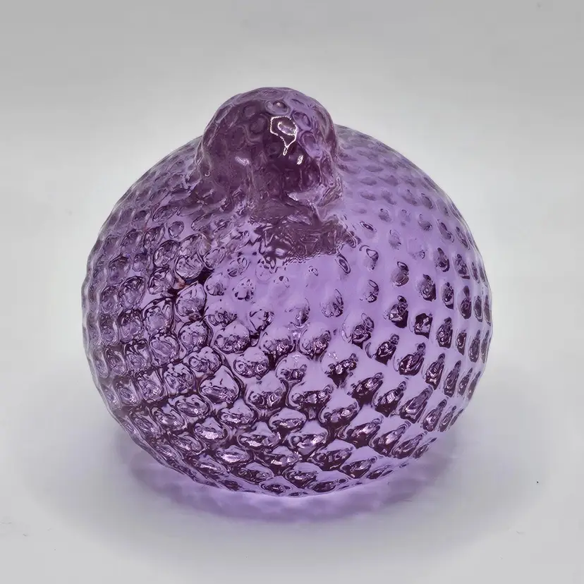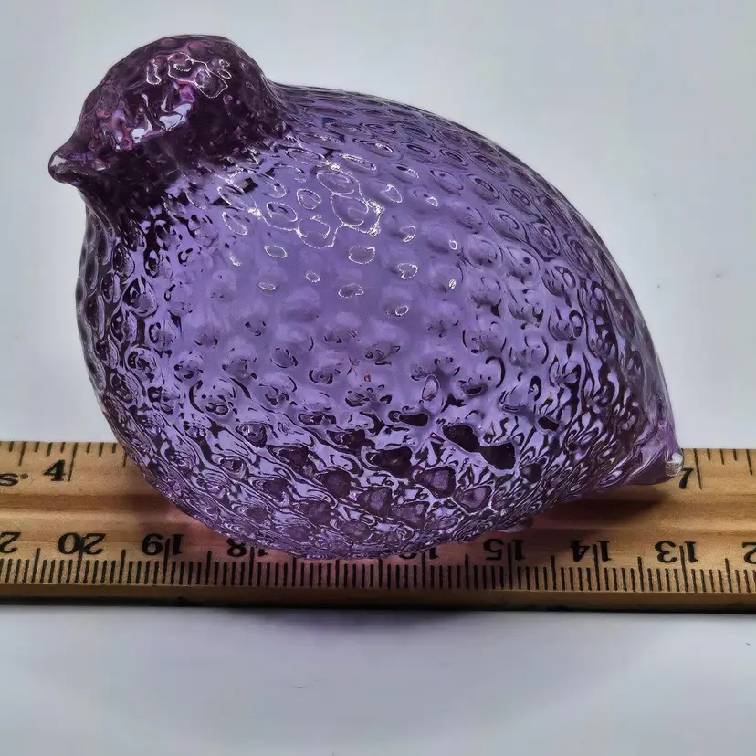 Absolutely GORGEOUS eye catching Chunky little quail/bird paperweight figurine! Unknown maker/artist and unsigned. Has a stunning optic like texture to it that adds to its appeal. The base is finished off with a nice smooth sand blasted finish. Appears to have had a sticker on the base at one point. Made of the amazing neodymium or alexandrite glass and changes color from a periwinkle blue to a gorgeous lavender purple! I did not notice any damage on this item, but there are a few very small scratches on the base due to sliding on furniture and surfaces. Nothing major or super noticeable.