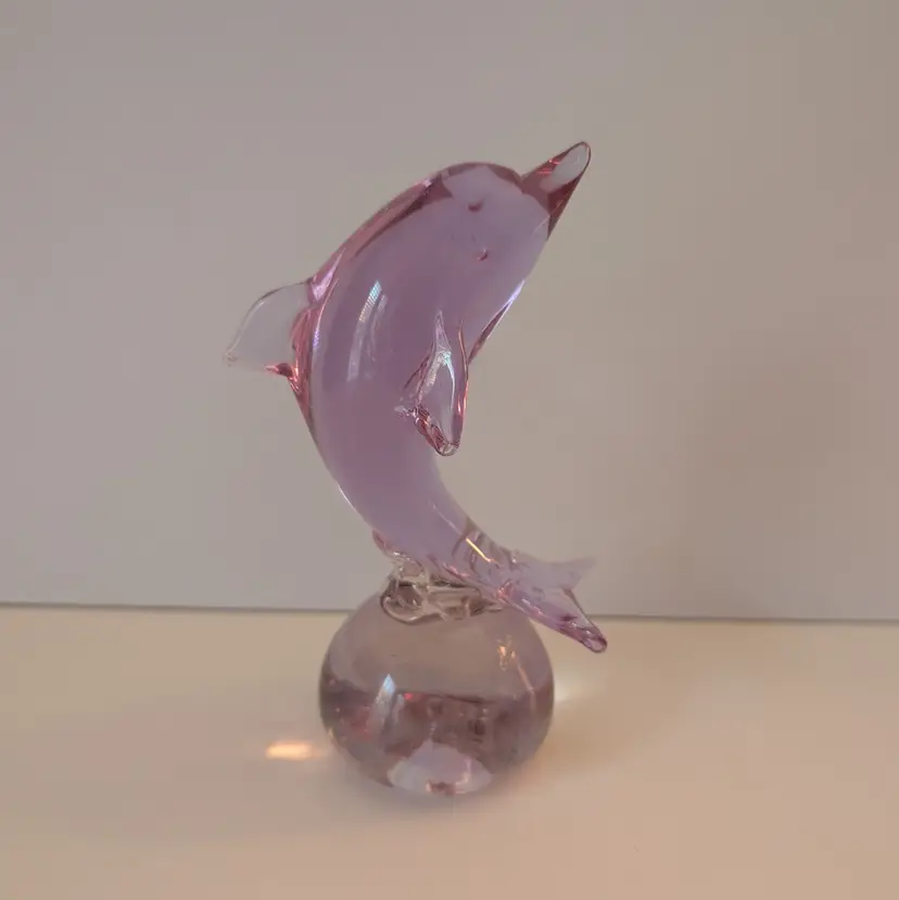 • Handcrafted glass dolphin figure
