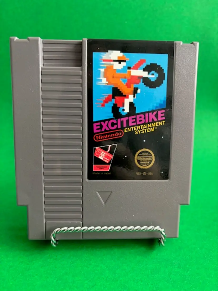 The classic Arcade bike racer, Excitebike, a Blackbox Title for the NES. This is a 3-Screw copy of the game. It has been cleaned and works. Picture is of the game for sale.