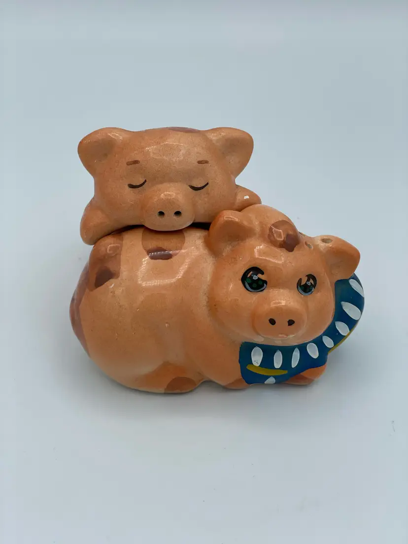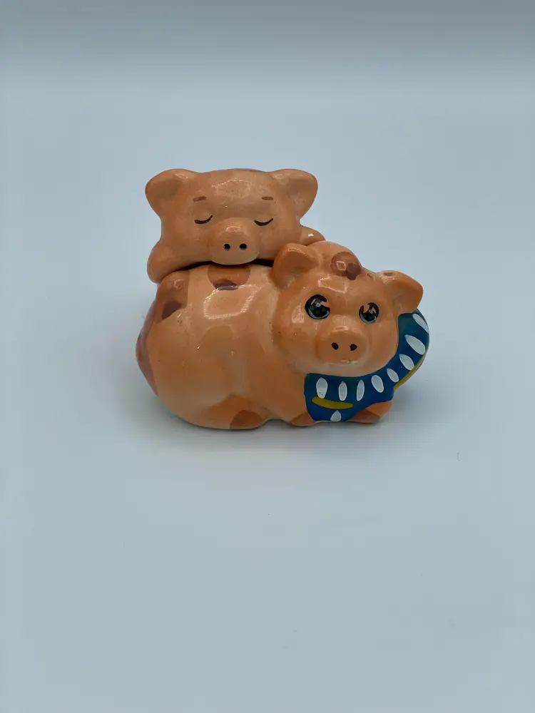 Nesting Hugging Pigs Salt and Pepper Shakers. 2" Tall X 3" W. No Chips/Cracks.