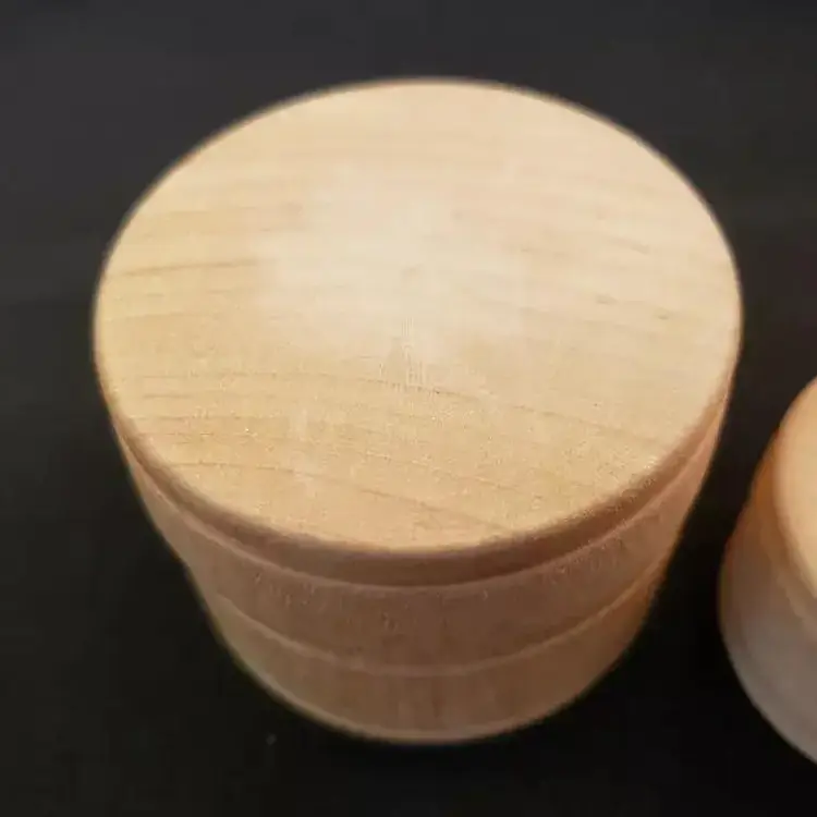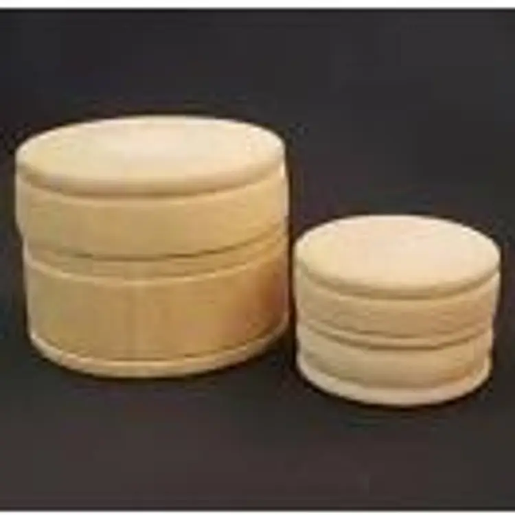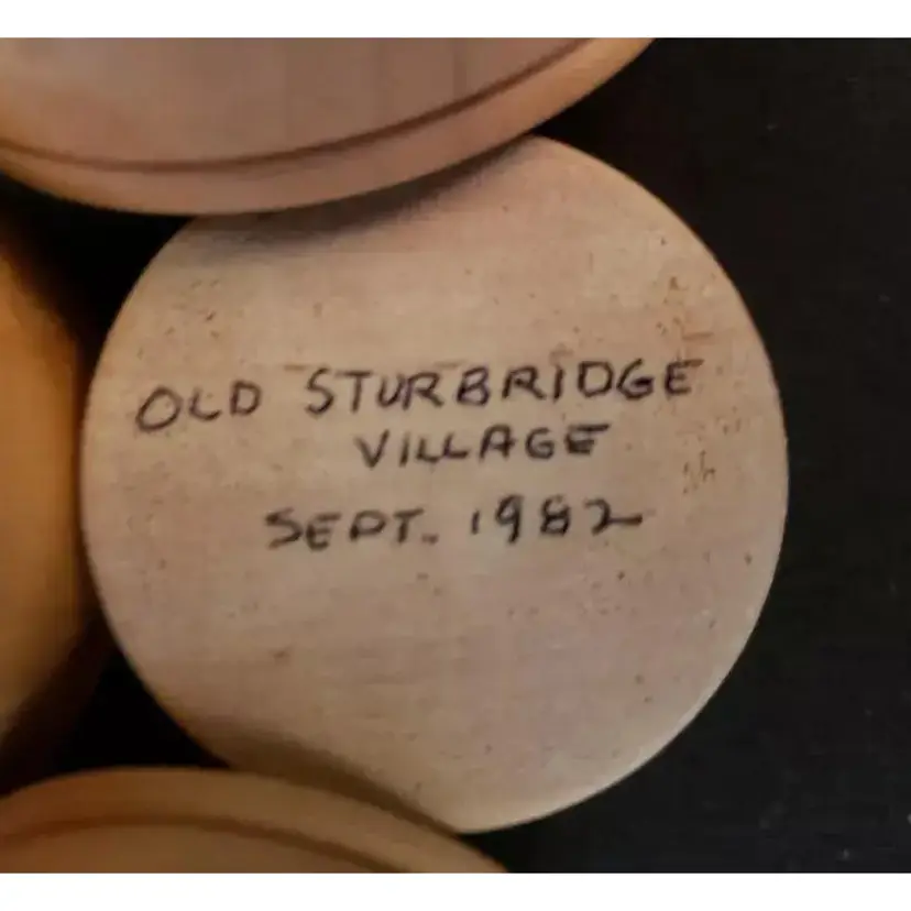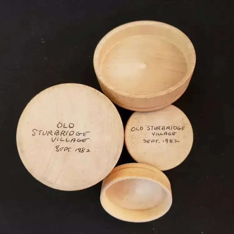 Round Wood Nesting Trinket Boxes (2) from Old Sturbridge Village Sept 1982 vintage. Larger box is approximately 1 5/8" tall with lid on. Both boxes are quite ordinary with no design other than the circles that go round the boxes (see photos). Condition is "Used" with some rubbing and a bit of handling dirt. Photos are part of the description and please ask questions prior to purchase when possible.