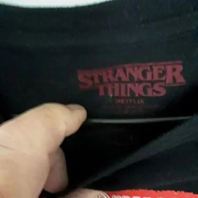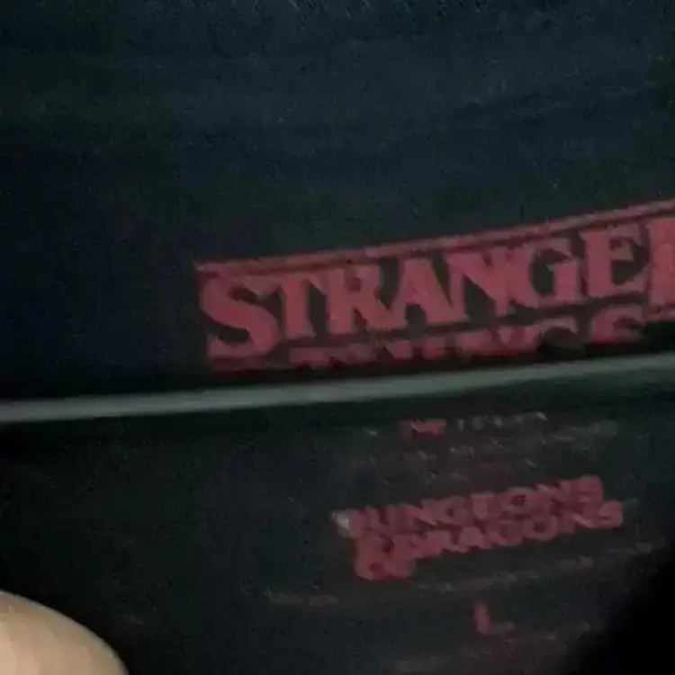 Get ready for an adventure with this Netflix Stranger Things Dungeons & Dragons Starter Set Shirt in size L. The shirt features a solid black color with a crew neck and short sleeves, and it is made of comfortable cotton knit fabric that is machine washable for easy care. With the iconic Stranger Things logo accent, this unisex adults T-shirt is perfect for fans of the hit TV show.