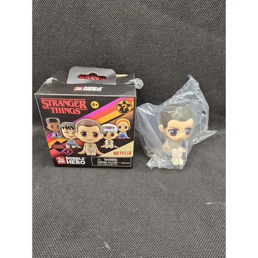 New in package. Box is opened. Netflix YuMe Stranger Things Bobble Hero 3” Bobblehead Figure Eleven. Box has some marks and dust from storage. Box has creases and is ripped on the top. Box has some dents. Edges of box has signs of wear. 843309150973. Made in China.