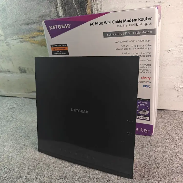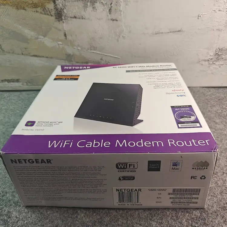 Upgrade your home network with the NETGEAR AC1600 WiFi Cable Modem Router (C6250). This 2-in-1 DOCSIS 3.0 modem and dual-band router delivers fast, reliable internet speeds up to 300 Mbps, perfect for streaming, gaming, and remote work. Compatible with major cable providers including Xfinity, Spectrum, and Cox, it eliminates monthly rental fees and simplifies your setup.