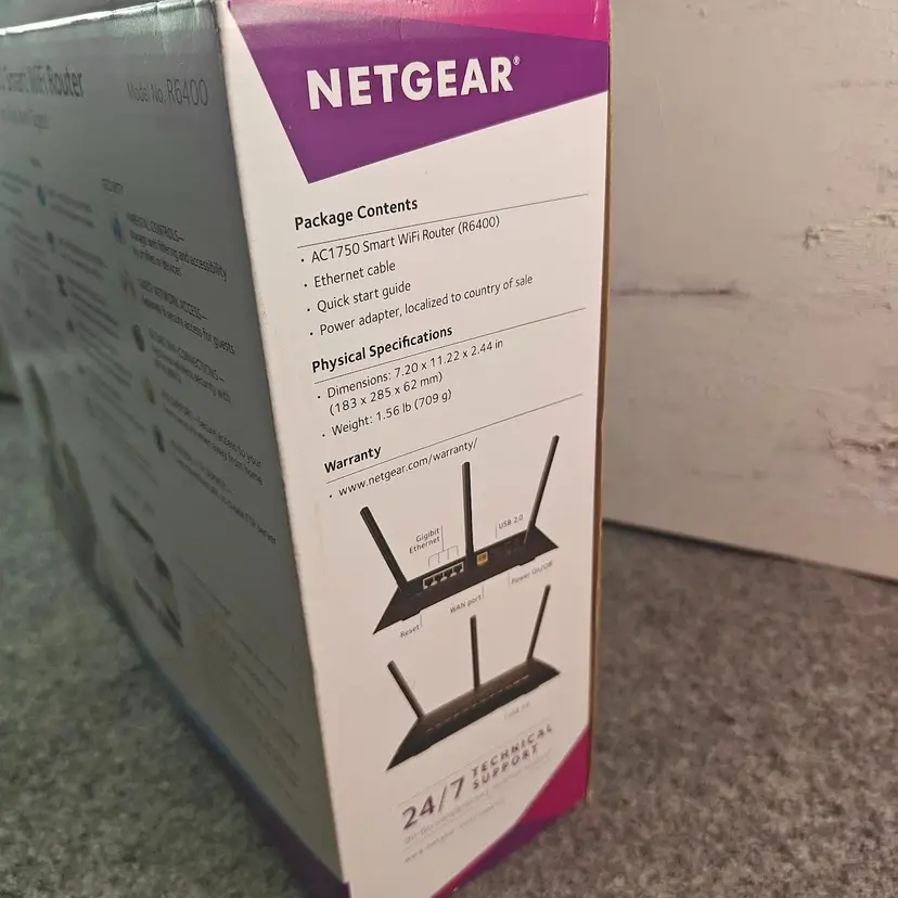 Experience fast, reliable internet with the NETGEAR AC1750 Smart WiFi Router (Model R6400). Designed for HD streaming, gaming, and smart home devices, this dual-band Gigabit router delivers speeds up to 1750 Mbps and supports up to 25 devices.