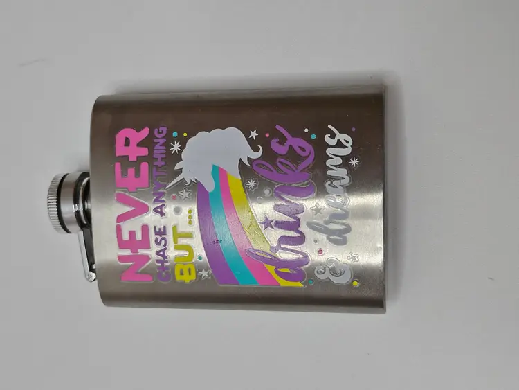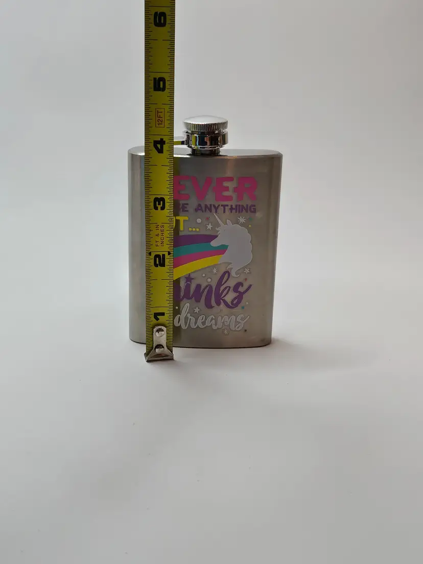 Indulge in your love for unicorns with this modern rectangular flask. Perfect for all occasions, this 4 oz stainless steel flask features a colorful multicolor design and a unicorn. It's lightweight, making it easy to carry around. The flask is perfect for storing your favorite drinks, making it a great addition to your bar tools and accessories collection. Get yours today and make a statement with this unique and fun flask.